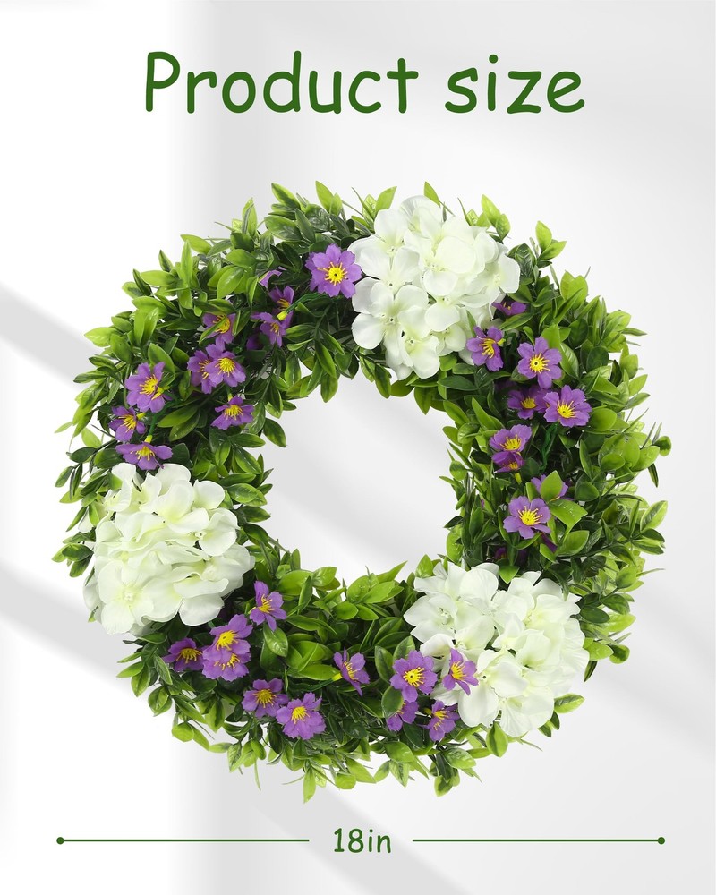 Summer Wreath Front Door Green Plant Purple Hydrangea 18 Inch Floral Decor
