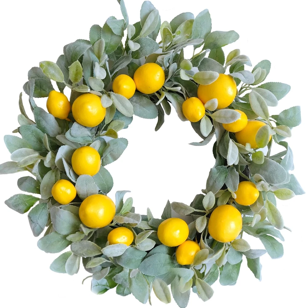 Store New Arrivals Add to Favorite View Feedback 18 Inch Yellow Lemon Spring Summer Wreath for Front Door, Lamb Ears Leaves with Artificial Lemon Door Wreath, Green Leaves for Indoor and Outdoor Description Item model number E-SUM-2303 Mounting Type Door Mount Color Yellow, Green Brand egolot Material Metal Country of Origin China Item Weight 0.87 Kilograms Shape Round Occasion Casual, Seasonal, Special Event Product Dimensions 18"D x 4"W x 18"H Manufacturer egolot [Yellow Lemon Door Wreath] Fresh yellow lemon brings home live and energy, especially in Spring and Summer day. Cute lamb ears leaves adds lovely and life looking for this wreath. This lemon wreath will be a good choice for hanging on your doors and home to add some color. [18 Inch Summer Spring Wreath] The outer diameter of this everyday lamb ears leaves lemon wreath measures about 18 Inch, this size is really suitable for who are seeking the large size and leafy full wreath for home decoration, such as hanging on the front door, back door, inside doors and decor your window and yards etc. [Lamb Ears Leaves Lemon Wreath] The lamb ears leaves is different from ordinary leaves, the color of this leave is soft and elegant, the shape of this leaves is cute and lovely. So lamb ears leaves wreath is well-matching and suitable for all kinds of home decor styles. [Wedding Lemon Wreath] If you are planning an romantic wedding party inside or outside, this green lamb ears leaves wreath with fresh yellow lemon will be a good choice as a wedding decorating wreath for hanging on the doors, windows, walls, chairs and cars etc. [Tips] 1.Fluff off the wreath to a perfect shape before hanging. 2.Please indoor use and covered outdoor use to keep the wreath long-lasting. 3.Avoiding high temperature weather and strong sun exposure to protect the yellow lemon. Fresh yellow lemon brings home live and energy, especially in Spring and Summer day. Cute lamb ears leaves adds lovely and life looking for this wreath. This lemon wreath will be a good choice for hanging on your doors and home to add some color. ABOUT US We offer the best prices around on high quality products. Our E-store includes media such as books, movies, music and games while offering electronics, toys, sporting apparel, clothing, tools, general home, garden items and more. SHIPPING We are always working hard to ensure your package arrives as soon as possible. Please understand that some factors like weather, high postal traffic, and the performance of shipping companies are outside of our control. We offer free shipping to the lower 48 states and ship within 2 business days of payment, usually sooner. We do not accept P.O. Boxes. Please provide a physical address. RETURNS We offer a 30-Day Return Policy on items which you are not completely satisfied with. You have the option for a full-refund or an exchange of the item. No returns are available on items shipped outside of the USA. PAYMENT We accept PayPal. CONTACT US This page content is yet to come Please ad us to your favorite seller and visit again later Thank You