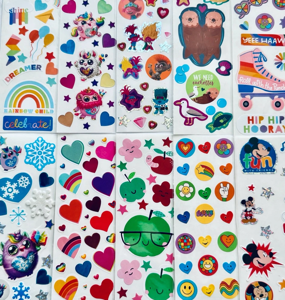Limited Edition Mixed Sticker Lot | The Ultimate Kit | Qty. 18+ Sticker Pack High Quality Only! Fun Assortment of Puffy, Scrapbook, Cartoons, Bubble, Pop Up Stickers Packs For Everyone! You will receive 18+ New Full Sticker Sheets of beautiful colorful themes. I have included a large variety of pictures of the assortment available. The pictures give you an idea of what you will be receiving. Please Note: You will not receive everything pictured. Please contact me with any special requests.