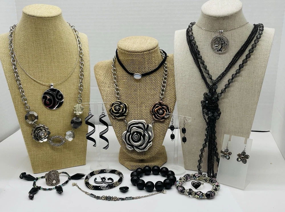 18 PC Vintage to New Jewelry Lot BLACK/SILVER Bracelets Necklaces Earrings J-818 This is all wearable jewelry . This lot may contain necklaces earrings brooches bracelets rings etc. Exactly as shown in photos. You get what you see here. There may be some signed pieces in here. Please keep in mind these are all estate sale items so some pieces may need light cleaning. Please email me with any questions you may have. Smoke-free, pet free home. We're Always happy to combine shipping! Please request a invoice if purchasing more than one item. Please contact me if you have any questions or concerns regarding your order. Feedback is left for buyers after purchase has been completed. Should our services meet your satisfaction, your feedback would be greatly appreciated. Should you have an issue or problem with your order, we request the opportunity to make amends or resolve the issue before feedback is left. Your satisfaction is our highest priority! I pack with care and ship quickly!