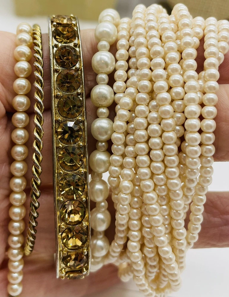 18 PC Vintage to New Jewelry Lot PEARL THEME Bracelets Necklaces Earrings J-555 This is all wearable jewelry . This lot may contain necklaces earrings brooches bracelets rings etc. Exactly as shown in photos. You get what you see here. There may be some signed pieces in here. Please keep in mind these are all estate sale items so some pieces may need light cleaning. Please email me with any questions you may have. Smoke-free, pet free home. We're Always happy to combine shipping! Please request a invoice if purchasing more than one item. Please contact me if you have any questions or concerns regarding your order. Feedback is left for buyers after purchase has been completed. Should our services meet your satisfaction, your feedback would be greatly appreciated. Should you have an issue or problem with your order, we request the opportunity to make amends or resolve the issue before feedback is left. Your satisfaction is our highest priority! I pack with care and ship quickly!
