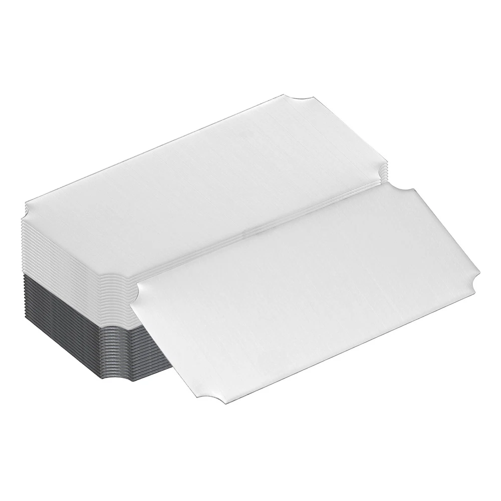 Document Our engraved nameplates are perfect for mounting on plaques, picture frames, sweaters, trophies, bags, display boxes, flag cases, and anything else.SpecificationMaterial: Stainless SteelColor: Silver/BlackSize: 15.2 x 6.3 cm/6 x 2.5 Inch(L*W)Thickness: 0.4 mm/0.02 InchPacking List: 18 Pcs x Engraved NameplateAdvantageOur engraved nameplates are made of brushed stainless steel which is durable, stable, not easy to fade, rust, or break, and can be used for a long time. With a smooth surface, it will not scratch your skin.The right thickness makes the plate stronger and allows for deeper engraving. These elegant nameplates have a beautiful luster and a simple design. Suitable for various crafts to add brilliance.The protective film design can effectively prevent scratches. The adhesive backing design allows you to stick this nameplate anywhere without any tools and it can be firmly on the objects.InstructionPlace a metal workbench block underneath the blank stamping tags for better stamping.NOTE:1. There may be light scratches and blemishes due to shipping, but they can be polished.2. Only for laser engraving, not suitable for mechanical engraving.3. Please remove the protective film before use. 18 Pcs 6" x 2.5" Engraved Name Plate Picture Frame Label Art Tag, Silver/Black Our engraved nameplates are perfect for mounting on plaques, picture frames, sweaters, trophies, bags, display boxes, flag cases, and anything else. Specification Material: Stainless Steel Color: Silver/Black Size: 15.2 x 6.3 cm/6 x 2.5 Inch(L*W) Thickness: 0.4 mm/0.02 Inch Packing List: 18 Pcs x Engraved Nameplate Advantage Our engraved nameplates are made of brushed stainless steel which is durable, stable, not easy to fade, rust, or break, and can be used for a long time. With a smooth surface, it will not scratch your skin. The right thickness makes the plate stronger and allows for deeper engraving. These elegant nameplates have a beautiful luster and a simple design. Suitable for various crafts to add brilliance. The protective film design can effectively prevent scratches. The adhesive backing design allows you to stick this nameplate anywhere without any tools and it can be firmly on the objects. Instruction Place a metal workbench block underneath the blank stamping tags for better stamping. NOTE: 1. There may be light scratches and blemishes due to shipping, but they can be polished. 2. Only for laser engraving, not suitable for mechanical engraving. 3. Please remove the protective film before use. Hot Item Payment 1.We accept eBay payment . 2.Payment must be received within 7 business days of auction closing. Shipping 1.We ship to your eBay or Paypal address. Please make sure your eBay and Paypal address is correct before you pay. 2.Items will be shipped within 1-3 business day when we received payment. 3.Delivery time depends on destination and other factors. Description Policy 18 Pcs 6" x 2.5" Engraved Name Plate Picture Frame Label Art Tag, Silver/Black Our engraved nameplates are perfect for mounting on plaques, picture frames, sweaters, trophies, bags, display boxes, flag cases, and anything else. Specification Material: Stainless Steel Color: Silver/Black Size: 15.2 x 6.3 cm/6 x 2.5 Inch(L*W) Thickness: 0.4 mm/0.02 Inch Packing List: 18 Pcs x Engraved Nameplate Advantage Our engraved nameplates are made of brushed stainless steel which is durable, stable, not easy to fade, rust, or break, and can be used for a long time. With a smooth surface, it will not scratch your skin. The right thickness makes the plate stronger and allows for deeper engraving. These elegant nameplates have a beautiful luster and a simple design. Suitable for various crafts to add brilliance. The protective film design can effectively prevent scratches. The adhesive backing design allows you to stick this nameplate anywhere without any tools and it can be firmly on the objects. Instruction Place a metal workbench block underneath the blank stamping tags for better stamping. NOTE: 1. There may be light scratches and blemishes due to shipping, but they can be polished. 2. Only for laser engraving, not suitable for mechanical engraving. 3. Please remove the protective film before use. Hot Item Payment 1.We accept eBay payment . 2.Payment must be received within 7 business days of auction closing. Shipping 1.We ship to your eBay or Paypal address. Please make sure your eBay and Paypal address is correct before you pay. 2.Items will be shipped within 1-3 business day when we received payment. 3.Delivery time depends on destination and other factors.