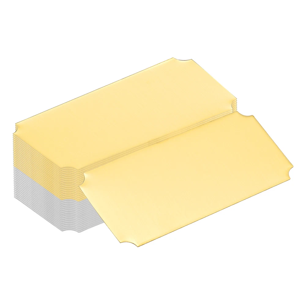 Document Our engraved nameplates are perfect for mounting on plaques, picture frames, sweaters, trophies, bags, display boxes, flag cases, and anything else.SpecificationMaterial: Stainless SteelColor: Silver/GoldSize: 15.2 x 6.3 cm/6 x 2.5 Inch(L*W)Thickness: 0.4 mm/0.02 InchPacking List: 18 Pcs x Engraved NameplateAdvantageOur engraved nameplates are made of brushed stainless steel which is durable, stable, not easy to fade, rust, or break, and can be used for a long time. With a smooth surface, it will not scratch your skin.The right thickness makes the plate stronger and allows for deeper engraving. These elegant nameplates have a beautiful luster and a simple design. Suitable for various crafts to add brilliance.The protective film design can effectively prevent scratches. The adhesive backing design allows you to stick this nameplate anywhere without any tools and it can be firmly on the objects.InstructionPlace a metal workbench block underneath the blank stamping tags for better stamping.NOTE:1. There may be light scratches and blemishes due to shipping, but they can be polished.2. Only for laser engraving, not suitable for mechanical engraving.3. Please remove the protective film before use. 18 Pcs 6" x 2.5" Engraved Name Plate Picture Frame Label Art Tag, Silver/Gold Our engraved nameplates are perfect for mounting on plaques, picture frames, sweaters, trophies, bags, display boxes, flag cases, and anything else. Specification Material: Stainless Steel Color: Silver/Gold Size: 15.2 x 6.3 cm/6 x 2.5 Inch(L*W) Thickness: 0.4 mm/0.02 Inch Packing List: 18 Pcs x Engraved Nameplate Advantage Our engraved nameplates are made of brushed stainless steel which is durable, stable, not easy to fade, rust, or break, and can be used for a long time. With a smooth surface, it will not scratch your skin. The right thickness makes the plate stronger and allows for deeper engraving. These elegant nameplates have a beautiful luster and a simple design. Suitable for various crafts to add brilliance. The protective film design can effectively prevent scratches. The adhesive backing design allows you to stick this nameplate anywhere without any tools and it can be firmly on the objects. Instruction Place a metal workbench block underneath the blank stamping tags for better stamping. NOTE: 1. There may be light scratches and blemishes due to shipping, but they can be polished. 2. Only for laser engraving, not suitable for mechanical engraving. 3. Please remove the protective film before use. Hot Item Payment 1.We accept eBay payment . 2.Payment must be received within 7 business days of auction closing. Shipping 1.We ship to your eBay or Paypal address. Please make sure your eBay and Paypal address is correct before you pay. 2.Items will be shipped within 1-3 business day when we received payment. 3.Delivery time depends on destination and other factors. Description Policy 18 Pcs 6" x 2.5" Engraved Name Plate Picture Frame Label Art Tag, Silver/Gold Our engraved nameplates are perfect for mounting on plaques, picture frames, sweaters, trophies, bags, display boxes, flag cases, and anything else. Specification Material: Stainless Steel Color: Silver/Gold Size: 15.2 x 6.3 cm/6 x 2.5 Inch(L*W) Thickness: 0.4 mm/0.02 Inch Packing List: 18 Pcs x Engraved Nameplate Advantage Our engraved nameplates are made of brushed stainless steel which is durable, stable, not easy to fade, rust, or break, and can be used for a long time. With a smooth surface, it will not scratch your skin. The right thickness makes the plate stronger and allows for deeper engraving. These elegant nameplates have a beautiful luster and a simple design. Suitable for various crafts to add brilliance. The protective film design can effectively prevent scratches. The adhesive backing design allows you to stick this nameplate anywhere without any tools and it can be firmly on the objects. Instruction Place a metal workbench block underneath the blank stamping tags for better stamping. NOTE: 1. There may be light scratches and blemishes due to shipping, but they can be polished. 2. Only for laser engraving, not suitable for mechanical engraving. 3. Please remove the protective film before use. Hot Item Payment 1.We accept eBay payment . 2.Payment must be received within 7 business days of auction closing. Shipping 1.We ship to your eBay or Paypal address. Please make sure your eBay and Paypal address is correct before you pay. 2.Items will be shipped within 1-3 business day when we received payment. 3.Delivery time depends on destination and other factors.