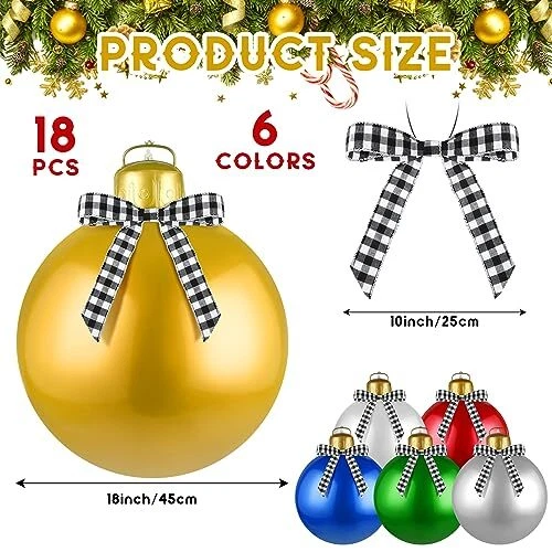 30 Days Return Policy Fast Delivery Trusted seller 18 Pcs Giant PVC Inflatable Christmas Ball 18 Inch Large Outdoor Christmas Decorations 6 Colors Outside Xmas Blow Ball for Xmas Porch Lawn Yard Holiday Product Description Amplia cantidad: este paquete incluye 18 piezas de bolas de adornos navideños de jardín y 18 piezas de lazos a cuadros de búfalo, lo que garantiza que tenga mucho para compartir en diferentes espacios; Ya sea que estés decorando varias habitaciones de tu casa o difundiendo la alegría de vacación en tu lugar de trabajo, esta gran cantidad garantiza que cada rincón tenga un toque navideño Bonito tamaño: con un diámetro de aproximadamente 18 pulgadas, nuestras decoraciones navideñas para exteriores tienen un tamaño ideal para decoraciones festivas notables; Tendrán un profundo impacto en su configuración navideña sin abrumar su espacio; Su tamaño ideal añadirá un toque encantador que dejará una impresión inolvidable en tus invitados Material de calidad: nuestras bolas navideñas inflables para exteriores y nuestro lazo navideño están diseñados pensando en la longevidad; La pelota inflable está hecha de material de PVC duradero que puede soportar diferentes condiciones climáticas, mientras que los lazos navideños están hechos de tela con un alambre de hierro en el interior que les permite mantener su forma durante toda la temporada de vacación Diseño navideño elegante: estas decoraciones navideñas para exteriores están diseñadas con diseños llamativos para mejorar su decoración de temporada; Las bolas navideñas vienen en 6 colores vibrantes, a saber, rojo, azul, verde, blanco, plateado y dorado; El patrón de tablero de ajedrez en blanco y negro de los lazos navideños complementa las bolas, creando una combinación armoniosa de colores para tus decoraciones Uso multipropósito: más allá de la Navidad, estas bolas navideñas inflables pueden servir para múltiples eventos; Desde bodas, fiestas de cumpleaños, aniversarios hasta Acción de Gracias, dale vida a tu decoración con estos adornos versátiles; Crea un ambiente festivo para una variedad de ocasiones Shipping Returns Payment Shipping Shipping is FREE to all addresses other than APO/PO boxes in the lower 48 states. All our stock ships from US-based warehouses. Shipped via USPS or UPS (depending on location and package weight) Unless stated otherwise, all orders will ship within 24-72 hours of your payment being processed. Check our feedback to see the great reviews of FAST shipping we offer. Returns As our valued customer, we will do our best to make sure the product you receive arrives to you on time and as expected. If you are not satisfied with your purchase, please contact us within 30 days of receiving your order to process a return. Payment We currently accept payment via eBay managed payments only. Once payment is cleared, we will dispatch your shipment within 1-3 business days. Please refer to the "Shipping" tab for more information regarding shipping speed to your destination.