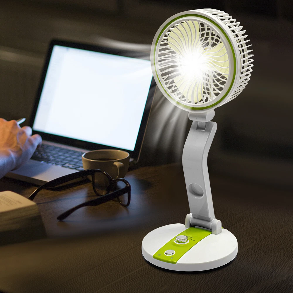 18" Portable Solar Power Fan Tabletop with LED Light USB Desk Fan Rechargeable