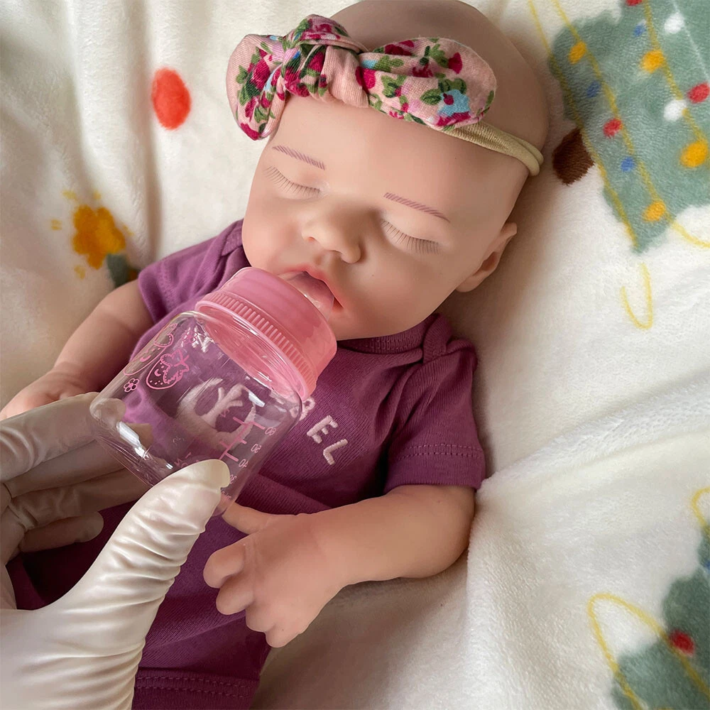 • Size: Around 18 Inches from head to toe. It fits into newborn-size hats, diapers, and other baby accessories • Material: made of full solid platinum silicone. We use only the best reborn supplies, making your reborn very realistic. • Function: The Doll's limbs are flexible and poseable, the doll can sit, lay down easily, and have a bath, but cannot stand up, speak, pee, blink • Safety: Conforms to the safety requirements of ASTM F963 and EN71 for ages 3+ • Application: Birthday present, Christmas gift, children's playmates, grandparent's companion, and doll collection PACKAGE INCLUDES • 1 x painted Silicone Reborn Girl doll ( anatomically a girl) • 1 x birth certificate • 1 x drink bottle This baby girl weighted like a real baby,her mouth is opened and she can take a pacifier 【 Kind Reminder】Each of our dolls is purely handmade, and the pictures are real-life photos. There may be slight differences between each silicone doll, and there may be slight flaws. It is normal to have demolding marks on the top of the head. If you mind, please choose carefully. If you have any questions, please feel free to contact us anytime. 【 User Notice】 Our reborn baby doll's head has a silicone injection hole. The injection hole is one of the processes used to make dolls. So it will leave a slight mark on its head. This is not a doll's quality problem. The silicone can feel sticky and attract pet fur and hair. A quick bath with baby soap and water takes care of that. Add a little cornstarch powder and dressing is much easier