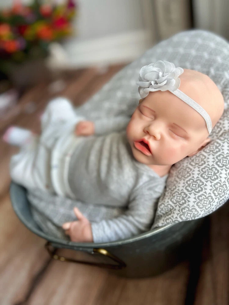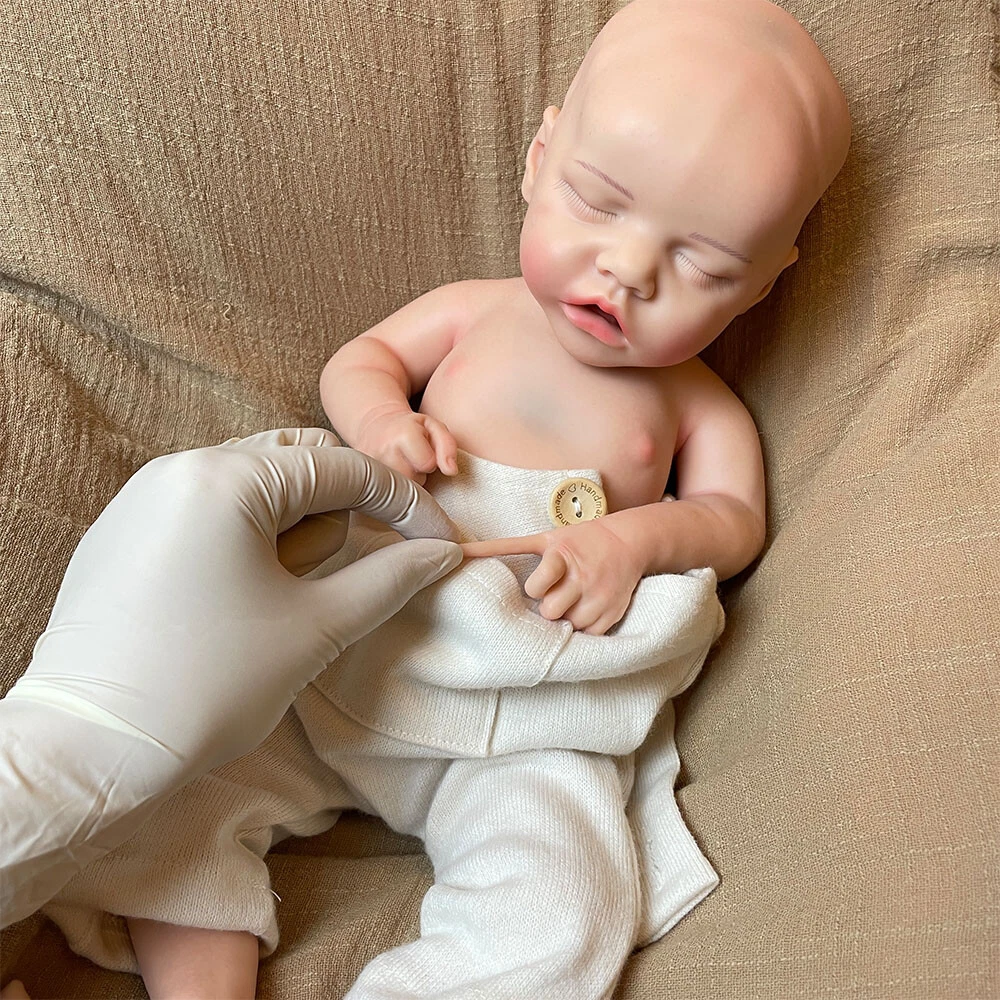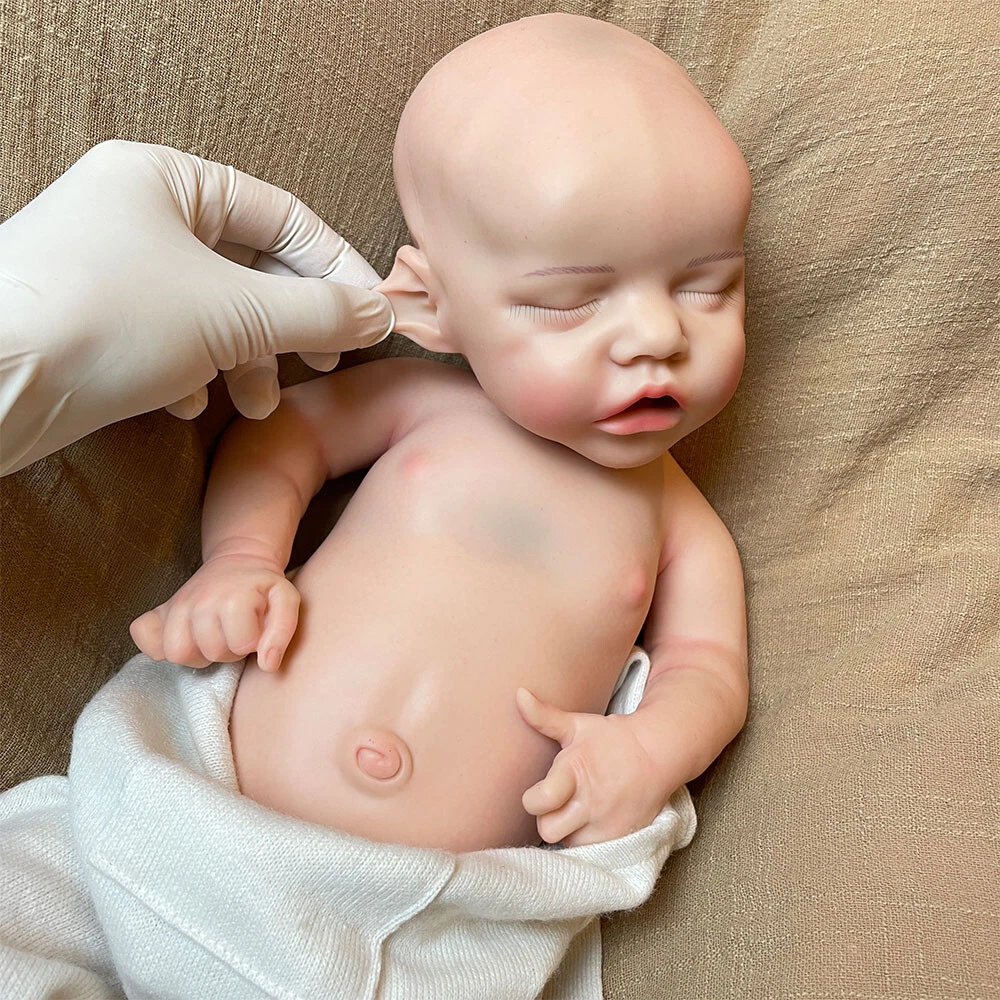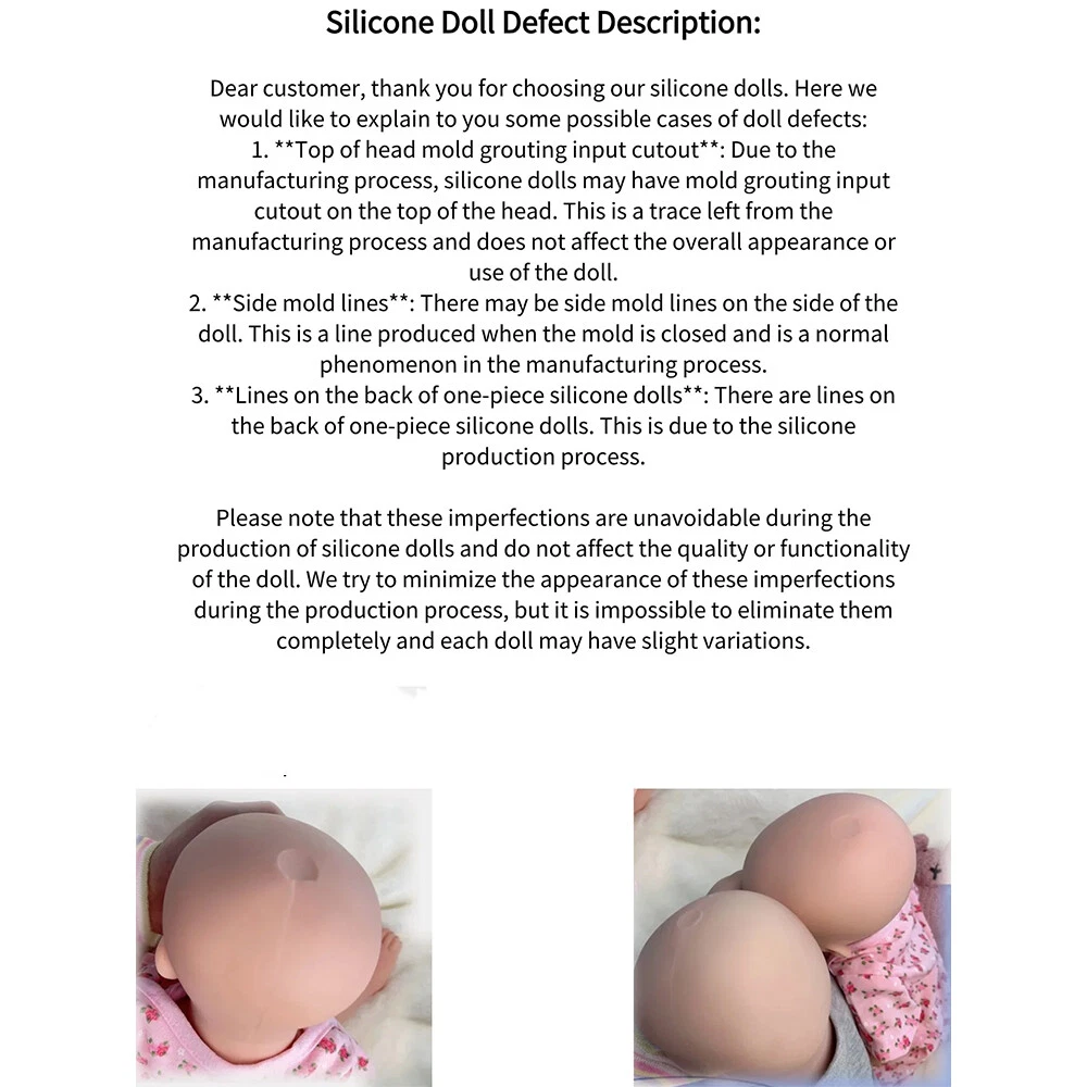 • Size: Around 18 Inches from head to toe. It fits into newborn-size hats, diapers, and other baby accessories • Material: made of full solid platinum silicone. We use only the best reborn supplies, making your reborn very realistic. • Function: The Doll's limbs are flexible and poseable, the doll can sit, lay down easily, and have a bath, but cannot stand up, speak, pee, blink • Safety: Conforms to the safety requirements of ASTM F963 and EN71 for ages 3+ • Application: Birthday present, Christmas gift, children's playmates, grandparent's companion, and doll collection PACKAGE INCLUDES • 1 x painted Silicone Reborn Girl doll ( anatomically a girl) • 1 x birth certificate • 1 x drink bottle This baby girl weighted like a real baby,her mouth is opened and she can take a pacifier 【 Kind Reminder】Each of our dolls is purely handmade, and the pictures are real-life photos. There may be slight differences between each silicone doll, and there may be slight flaws. It is normal to have demolding marks on the top of the head. If you mind, please choose carefully. If you have any questions, please feel free to contact us anytime. 【 User Notice】 Our reborn baby doll's head has a silicone injection hole. The injection hole is one of the processes used to make dolls. So it will leave a slight mark on its head. This is not a doll's quality problem. The silicone can feel sticky and attract pet fur and hair. A quick bath with baby soap and water takes care of that. Add a little cornstarch powder and dressing is much easier