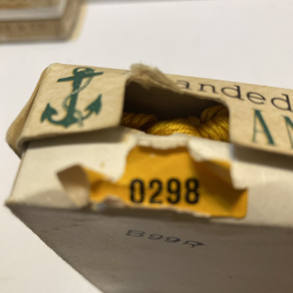 This product is a lot of 18 skeins of yellow cotton embroidery floss, each containing 8 meters of thread. It is Clarks brand, 6 ply stranded cotton, suitable for cross stitch and needlepoint projects. The floss is unused and perfect for hand embroidery, making it a great addition to any crafter's collection.