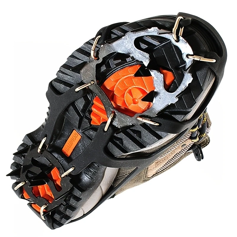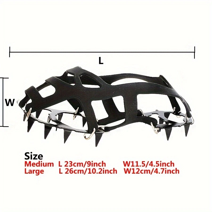 Features 1. Material: sturdy natural rubber material, durable pointed traction, light weight, comfortable to wear, easy to put on and take off. 2. Function: Designed to help you hike on snow and ice, prevent slipping in icy conditions, great for ice fishing, hunting, walking, jogging, hiking, running, shoveling snow, etc. 3. Increased safety: Ice claws enhance grip on snow/ice. Good grip on snow and ice to help avoid those treacherous slippery slope situations. 4. Easy to carry: lightweight structure, easy to put on and take off, folded up to fit in your pocket. 5.Size adjustable: can be adjusted according to the size of the shoes. 6 sizes fit different shoe sizes, suitable for most feet: sneakers, boots, casual shoes and formal shoes, please check the size in detail before placing an order. Description Strong grip: sturdy steel spikes on the front and heel of the foot to reduce the risk of falls and increase stability and safety when walking on snow and ice. high quality materials. Our shoe covers are made of high quality TPE rubber with super elasticity, high toughness, no tearing and no breaking. Close fit with your footwear, easy to put on and take off. Resistant to -45°C. Non-slip raised design. Each side of our ice cleats has a non-slip raised design that greatly increases the friction between the ground and the ice cleats, and between the shoes and the ice cleats, providing good traction. Package Included: Ice and snow non-slip cleat clip clip hiking shoes and boots clip USA