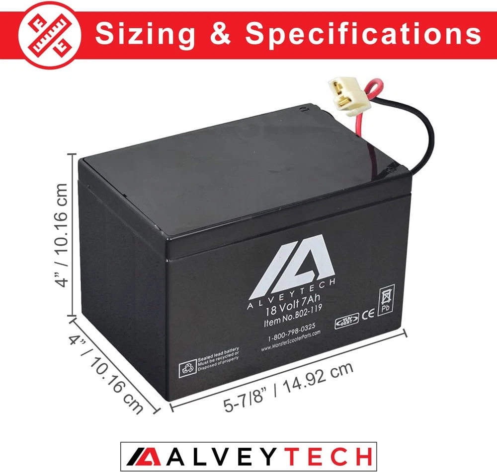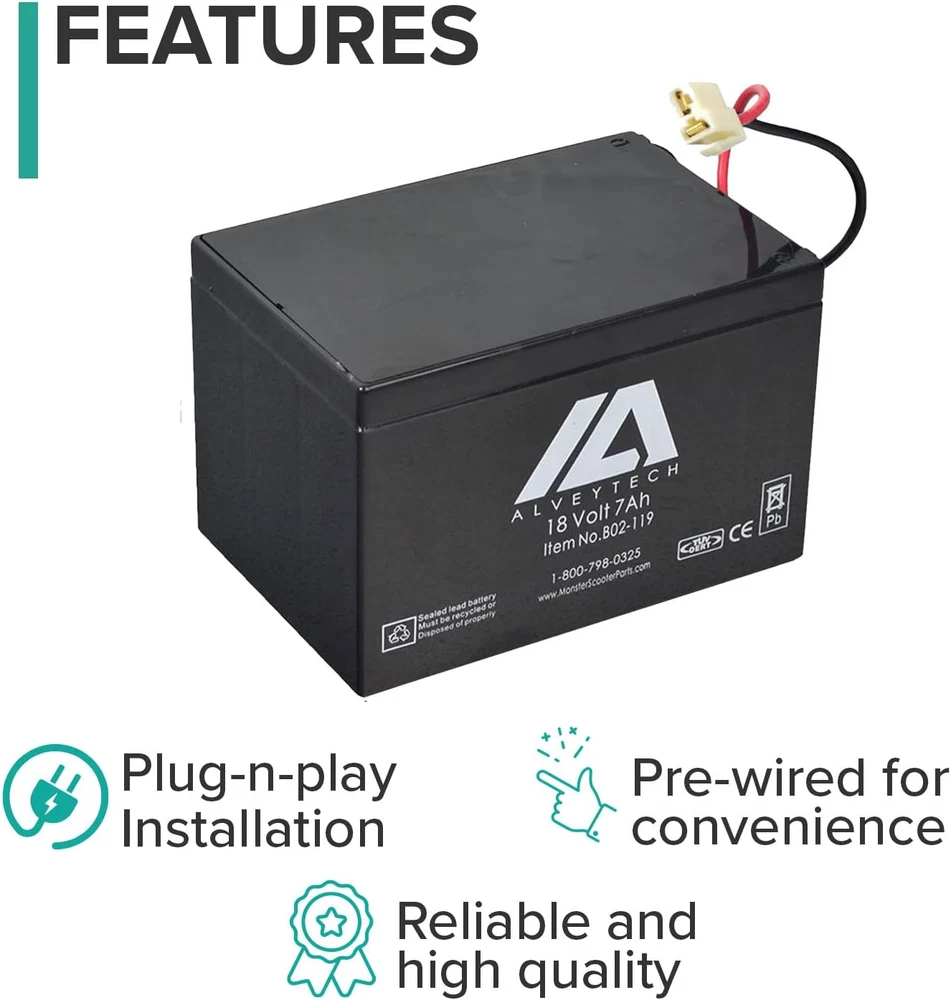 Store New Arrivals Add to Favorite View Feedback Contact 18 Volt 7 Ah Battery for Minimoto Sport Racer - OEM Parts and Batteries, Deep Cycle SLA with Plug N' Play Connector, for Electric Power Motor, Motorcycle Street Bike, Adults Kids Description Vehicle Service Type ATV, Scooter, Dirt Bike Voltage 18 Volts Manufacturer Part Number B02-119 Battery Cell Composition Sealed Lead Acid Item Weight 7.75 Pounds Item Weight 7.75 pounds Is Discontinued By Manufacturer No Product Dimensions 7"D x 4.75"W x 5.75"H Easy Installation – This 18 volt battery comes pre-wired with a quick connect wiring harness for quick and easy Large Capacity – This deep cycle battery pack has an amp hours capacity of 7 Ah, meaning you will have plenty of run time per charge Non-Spillable Construction – Unlike some batteries, this battery has been specifically designed to avoid any battery acid spills or leaks Compatibility – This battery pack fits the Minimoto Sport Racer Risk Free – We honor ’s return policy Is your electric Minimoto street product not holding a charge like it used to? If so, it may be time to replace your aging battery. Finding parts like this used to be hard, but now you can simply replace your battery with one of our AlveyTech 18 volt 7 Ah batteries! This battery was designed to be as easy to install as possible, which is why it comes with a pre-wired plug and play quick connect wiring harness. Simply unplug your old battery, pull it out, and plug this one back in its place. Of course, we understand that Minimoto makes a variety of electric motor models for both kids and adults, which is why this battery has been designed to be non-spillable. Also, to ensure maximum riding time, this battery has a relatively high capacity of 7 amp hours, allowing you to ride longer and charge less. So what are you waiting for? Get your power ATV, go kart, dirt bike, scooter, motorcycle, or other Minimoto back in working shape and add one of these high-quality batteries to your cart today! MODEL COMPATIBILITY Minimoto: Sport Racer. SPECIFICATIONS Brand: AlveyTech Model: BT7-18HC Designed Cycle Life: 350 cycles @100% DOD Voltage: 18V Capacity: 7 Ah Length: 5.95" Width: 4.08" Height: 3.94" ABOUT US We offer the best prices around on high quality products. Our E-store includes media such as books, movies, music and games while offering electronics, toys, sporting apparel, clothing, tools, general home, garden items and more. SHIPPING We are always working hard to ensure your package arrives as soon as possible. Please understand that some factors like weather, high postal traffic, and the performance of shipping companies are outside of our control. We offer free shipping to the lower 48 states and ship within 2 business days of payment, usually sooner. We do not accept P.O. Boxes. Please provide a physical address. For shipping outside of the continental USA, we only use eBay's Global Shipping Program.The item is shipped to KY and then sent to the rest of the world. International customers are responsible for all duties and taxes. Continue to check out in order to calculate costs for shipping the item to your country. Messages regarding eBay's Global Shipping Program MUST be directed at eBay EXCLUSIVELY. RETURNS We offer a 30-Day Return Policy on items which you are not completely satisfied with. You have the option for a full-refund or an exchange of the item. No returns are available on items shipped outside of the USA. PAYMENT We accept PayPal. CONTACT US This page content is yet to come Please ad us to your favorite seller and visit again later Thank You CUSTOMER SATISFACTION We try our very best to make sure every customer is completely satisfied. If there's a problem, message us! We're happy to help. WE ACCEPT Copyright © 2021 AutoDS. | All Rights Reserved