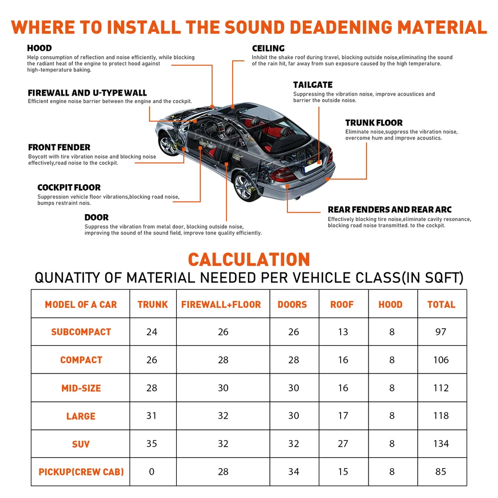 Description: Svfruit Best choice of motor parts 18sqft Firewall Sound Deadener Auto Roof Heat Shield Insulation Deadening Mat Description: --1 .Sound deadening material size: Nominal thickness 276 mils; Total coverage area of 18 sqft; Nominal sheet Size 16"x157". working Temperature Range: -40°F ~ 300°F --2 .Heat Insulation and Vibration Deadener: Effectively blocks 98% of radiant heat transfer. Sound deadening mat is a very versatile insulation material with excellent thermal barrier properties that will block engine, exhaust, & summer heat, ensuring your vehicle stays cooler in the summer and warmer in the winter, making your ride more pleasant! --3 .Automotive self-adhesive insulation is a waterproof lightweight thermal deadener with a highly compressible closed-cell foam formulation, it absolutely doesn’t absorb moisture and has no odor --4 . It is a kind of heat-insulating material with a wide range of uses, which can block the heat from the sun and the engine from being transferred into the car, so that the car can maintain a comfortable temperature. --5 .The car sound deadening mat plays a role in suppressing the vibration caused by the engine, reducing the vibration in the car and extending the life of the parts in the car.As the same time,sound deadening mat has excellent sound insulation performance, reduces the noise outside the car to create a comfortable driving environment. --6 .Widely used in car roofs, hoods, firewalls, chassis, interior and exterior partitions, trunks, wheel arches, body panels, under seats, trunk covers, etc. Easy to cut and install, suitable for various car models.This sound insulation and heat insulation pad is light and non-absorbent, resistant to oil and high temperature, and has a strong adhesive to stick firmly. Specifications: Product Name : Heat Sound Deadener Insulation Mat Material : Under layer: Strong back glue; Middle layer: High density foam cotton; Top layer: Aluminum foil Size : 16"x157"=18sqft Thickness : 1/4" (7mm) Function : Car Sound Insulation Placement on Vehicle : Front/Rear/Left/Right Reinforced / Crush Resistant : Yes Mildew & Mold Resistant : Yes Water resistant : Yes Non-toxic : Yes Package included: 1x Heat Sound Deadener Mat Why use sound insulation mat? Prevent the heat of the engine from being transferred to the hood, avoid overheating of the hood and protect the paint surface of the hood. It has excellent heat insulation performance, effectively blocking 98% of the heat transfer, ensuring that your vehicle is warm in winter and cool in summer. Absorb the noise and vibration caused by the engine to create a comfortable driving environment.Install: 1.Remove the door panel. 2.Clean up the place that needs to be installed. 3.Fit the insulating material tightly and firmly to the car body, so that the best sound insulation and damping performance can be exerted. Don't abandon all the leftovers you have cut, you can paste them in some hidden placesWhere to install Can be used in places such as roofs, doors, engines, chassis, seats, trunks, etc. Note: 1.The real coior of+he iftem may he sichtiy c'fferent frm the nitures shown on website caused oy many tactors such as oriantness oiyour monitor and light brightness. 2.Please allow slight deviation for the measurement data. 3.Please allow 1-3cm error due to the hand measurement. If you have any question, please contact us. Wish you have a happy shopping time! Item Specifics Brand MGT Type Carpet Mat, Heat Sound Deadener Insulation Mat Material Aluminum & Foam & Adhesive Backing Placement on Vehicle Cargo/Trunk/Bonnet/Dashboard/Under Seat/Doors Color Silver&Black Features Noise Reduction, Easy to Cut, Self-Adhesive Features2 Easy Installation, Waterproofing, Fireproofing Features 3 Protects Paint from Blistering, Anti-moisture Item Width 42cm=16.5" Item Length 400cm=157" Thick 7mm= 276Mil=1/4" Size 1.68sqm=18sqft Number of Pieces 1 Fitment Type Direct Replacement Application Turbo,Front Fender,Rear Fender Application 2 Hood,Firewall,Doors,Floor,Roof Application 3 Trunk Lid,Trunk Room,Engines,Tailgate Application 4 Ceiling,underneath bonnets,Underfelt Application 5 Underlay,Boot,Panel,Chasis Application 6 Automotive,Motorhome,Camper,Restorer Application 7 Classic Car,Race Car,Stock Car,Old Vintage Car,Pickup,SUV,Caravan Application 8 Van,Truck,limousine,Camper,Boat,Motor Homes,School Bus,Low Rider Application 9 Muscle car/Hot rods/Corvettes/Imports/Tuners/Street rods/Rat rods Application 10 Cockpit Floor, Tailgate, Firewall U Type Wall Application 11 For Use in The Application Of Any Sound Deadening Application 12 Car& Home Interior Heat Sound Deadener Insulation Function Protects Paint from Blistering Function 2 Reduce the road/ Engine/ Wind noise Function 3 Dustproof, Waterproof, Anti-moisture Easy Installation All curves and corners without the need for heat Product status 100% Brand new Manufacturer Part Number Car Heat / Sound Insulaiton Deadener Superseded Part Number Heat Sound Deadener Insulation Mat Interchange Part Number Deadening Material Insulation Cars & Truck Package included 1x Heat Sound Deadener Mat Payment 1. It will be much appreciated that you finish your payment asap or it will make UPI (unpaid item case) on your account leading to be suspended or restricted by eBay when those UPI cases carry over to certain amount. 2. Any problems please contact us for more details. Shipping 1. All items will be shipped to buyer's ebay address. 2. All items will be shipped within 24-48 working hours upon receipt of payment, and multiple items will be combined shipping. 3. In most cases, delivery takes around 3-5 business days, it's highly depended on the efficiency of the shpping carrier. If your item doesn't arrive on time, please contact us immediately for further assistance. Please note there is no local pickup service available. Returns If you are not 100% satisfied with your purchase, you can return the product and get a full refund or exchange the product for another o