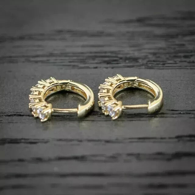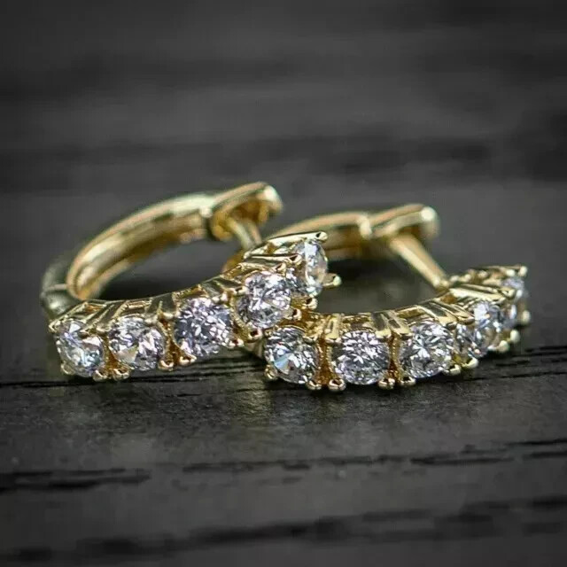 1.80 Carat Round Moissanite Hoop Huggie Earrings in 14k Gold Plated