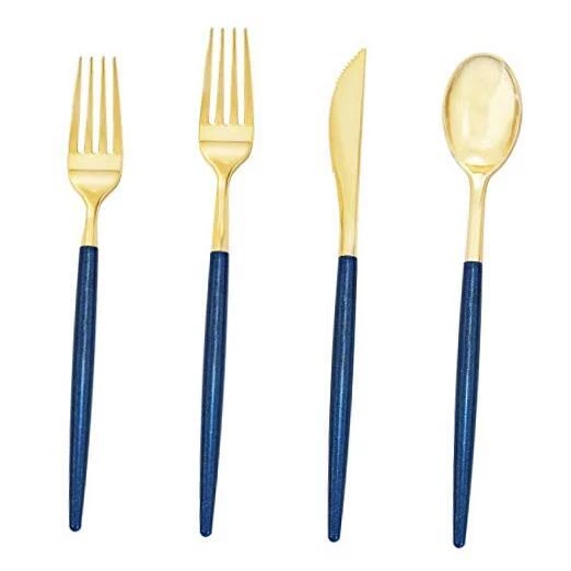 Return Policy Fast Delivery Trusted seller 180 Pieces Gold Plastic Cutlery,Gold Flatware with Blue Glitter Handle,Disposable Gold and Blue Cutlery,Suitable for Party,Birthday,Wedding Product Description Value Pack:the plastic flatware include 45 knives,45 dinner forks,45 dessert forks,45 spoons. It have polybag in the box. If you can't use all of the cutlery in one time, pls put back in the polybag which will help you to keep them clean. Unique:The gold cutlery is new color with new design,special experience,The unique handle design, blue glitter looks noble and charming, enhance your party level. Premium Quality: the gold plastic silverware is extra heavy and durable. No sasy to break or scratch.You can wash them after use. Do not microwave! Hand wash only! Or just throw them and it will save you a lot time. Healthy and Convenience:Gold plastic silverware are made of hard plastic, BPA free, non-toxic, food grade. Use these for party,birthday or wedding,and they'll be perfect for steak pasta and dessert! Added a very sophisticated look to the party! Serious Service:We’ve got your back with satisfaction . If you have any quality problems, please contact us by email, we will give you the reply as soon as possible. Shipping Returns Payment Shipping Shipping is FREE to all addresses other than APO/PO boxes in the lower 48 states. All our stock ships from US-based warehouses. Shipped via USPS or UPS (depending on location and package weight) Unless stated otherwise, all orders will ship within 24-72 hours of your payment being processed. Check our feedback to see the great reviews of FAST shipping we offer. Returns Seller does not accept returns Payment We currently accept payment via eBay managed payments only. Once payment is cleared, we will dispatch your shipment within 1-3 business days. Please refer to the "Shipping" tab for more information regarding shipping speed to your destination.