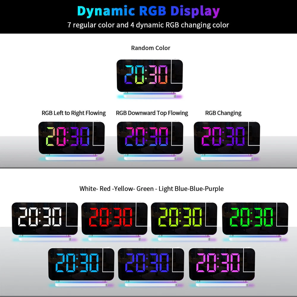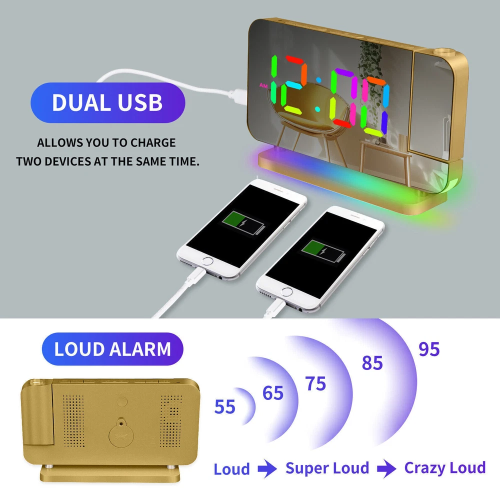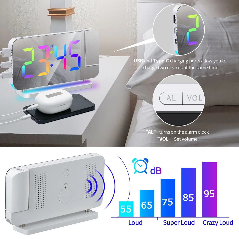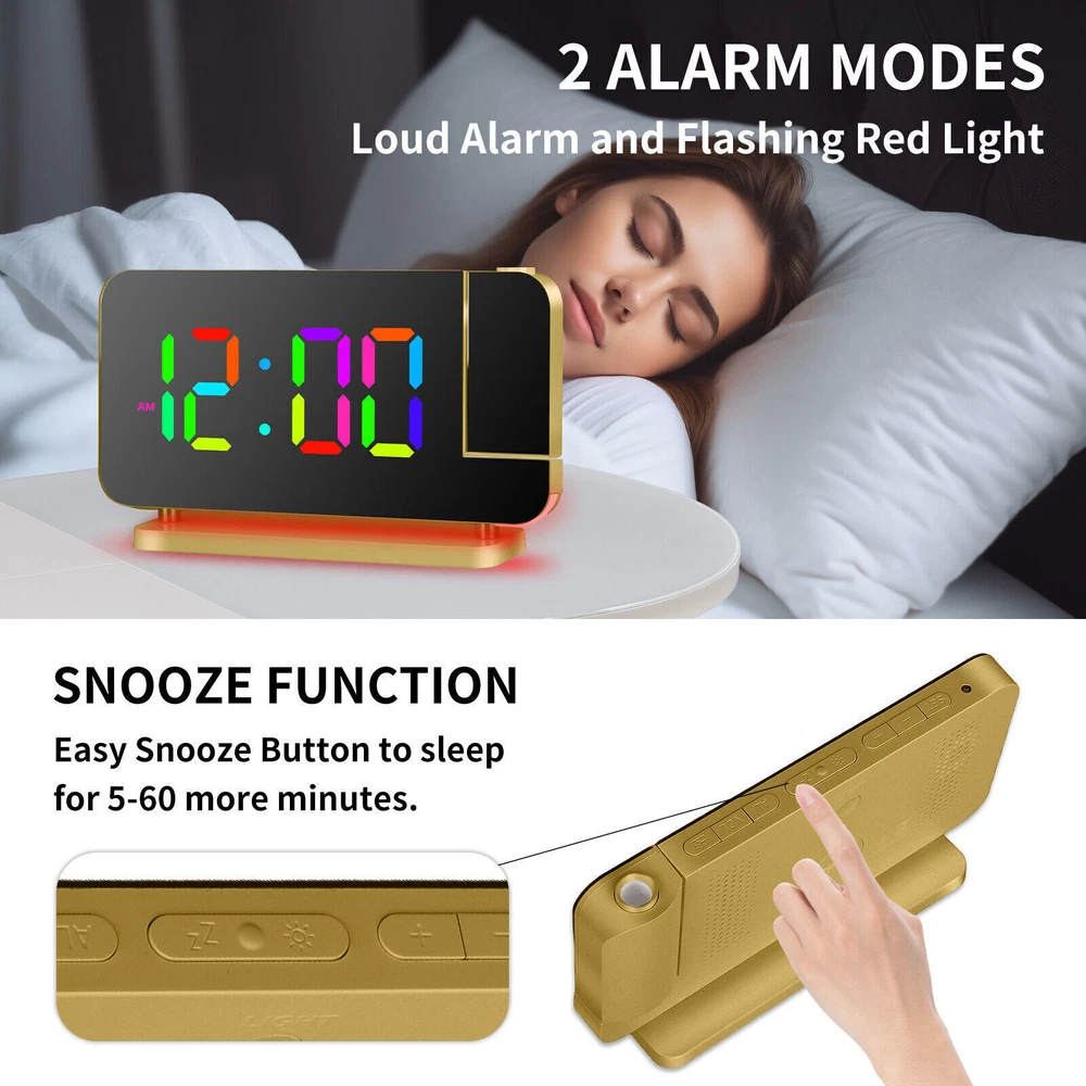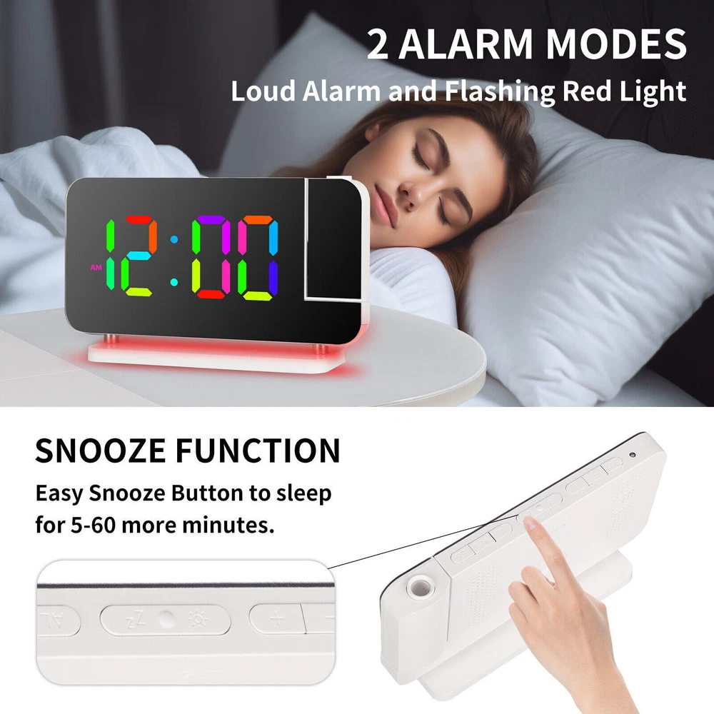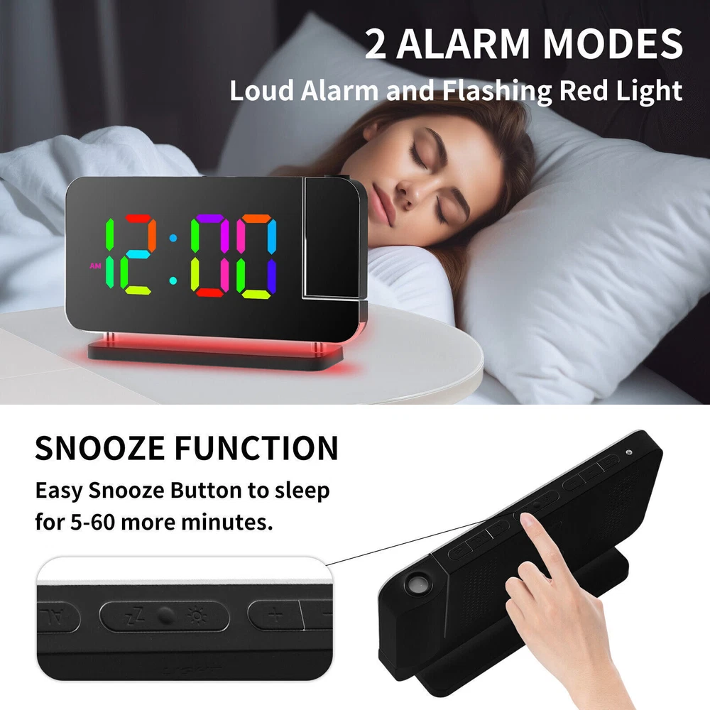 You may also like Universal Boat Outboard Engine Motor Kill Stop Switch With Safety Tether Lanyard 15.03 USD 15.99 USD Free shipping 6% off For Jeep Wrangler JL Gladiator JT Accessories Center Console Hanging Storage Box 18.79 USD 19.99 USD Free shipping 6% off For Toyota CAMRY 2018-2021 Car Silver Passenger Right Side Mirror Cover Cap HOT 28.49 USD 29.99 USD Free shipping 5% off For 2008-18 Mercedes-Benz W463 G550 G63 Left Rear Tail Lights Lamp Cover Replace 71.43 USD 75.99 USD Free shipping 6% off For 2010-2013 Acura MDX Left Rear Reflector Bumper Trim 3555-STX-A11 33555STXA11 36.09 USD 37.99 USD Free shipping 5% off Steering Wheel Audio Volume Cruise Control Switch For Nissan Pathfinder (Left) 32.89 USD 34.99 USD 5.0 USD 6% off RGB LED Mirror Sequential Signal Light& Fog Light for Infiniti Q50 Q60 2014-2022 111.85 USD 118.99 USD Free shipping 6% off 1Pair Carbon Fiber Car Rearview Mirror Cap Cover Trim For Honda Civic 2012-2015N 33.83 USD 35.99 USD Free shipping 6% off 4Pcs Roof Rack Rail End Cover Shell Cap For Lexus GX470 2003-2009 Sport 4-Door 56.39 USD 59.99 USD Free shipping 6% off For Honda Civic 2012-2015N Carbon Fiber Car Rearview Mirror Cap Cover Trim 1Pair 33.83 USD 35.99 USD Free shipping 6% off Crystal Clear Lens Brake Tail Light Turn Signal Cover For 2008-12 Accord Sedan 237.49 USD 249.99 USD Free shipping 5% off For Toyota Highlander 2015-2019 LED Rear Fog Light Tail Bumper Light Sets 84.87 USD 90.29 USD Free shipping 6% off LED Digital Projector Mirror Alarm Clock Time Projection Snooze Dual USB Alarms Feature: ⏰HD PROJECTION ALARM CLOCK -- The projector of the Alarm Clock can be rotated 180°, one-key flip time display, 4-level brightness is adjustable, 1.64-11.4 feet (0.5-3m) effective projection distance, can clearly project the time on the wall Or the best position on the ceiling for you to easily watch the time. ⏰11-COLOR RGB DIGITAL DISPLAY -- The Digital Clock adopts a color-changing LED display, with 4 dynamic RGB colors + 7 fixed color modes, 6 level brightness adjustable + auto dimming,bringing you a different visual experience. ⏰10-COLOR MODES NIGHT LIGHT --The Digital Alarm Clock has a built-in LED light, with 3 dynamic RGB colors + 7 fixed color modes, one key to switch the light color, 5 levels of brightness adjustable, and can also be used as an atmosphere light. ⏰USB-C CHARGING PORT -- The Digital Desk Clock is equipped with one USB Type C + one USB A output port, which can charge 2 electronic devices at the same time, meeting most of your charging needs. ⏰7.4-INCH MIRROR DISPLAY — The LED Alarm Clock is equipped with a 7.4-inch HD display and large digital fonts, you can clearly watch the time within 30 feet; the unique acrylic mirror design can also be used as a makeup mirror. ⏰5 LEVELS VOLUME ADJUSTABLE--The Loud Alarm Clock has a variety of volume options from 55-65-75-85-95db, you can choose the appropriate volume according to your sleep depth, which is very suitable for heavy sleepers. ⏰SNOOZE +12/24H MODE--The LED RGB Clock is designed with a snooze button on the top, which can be turned off at will, allowing you to easily get 5-60 minutes of lazy bed time; 12 and 24 hours are available in two time display modes. Package include: 1 x Projection Alarm Clock 1 x Power Adapter 1 x USB C Charging Cable 1 x Product Manual ee2e60e0336d0a67c3665b091_ee8d8c09-be98-4462-9083-9feb53bc0b7c.__CR0,0,1464,600_PT0_SX1464_V1___.jpg