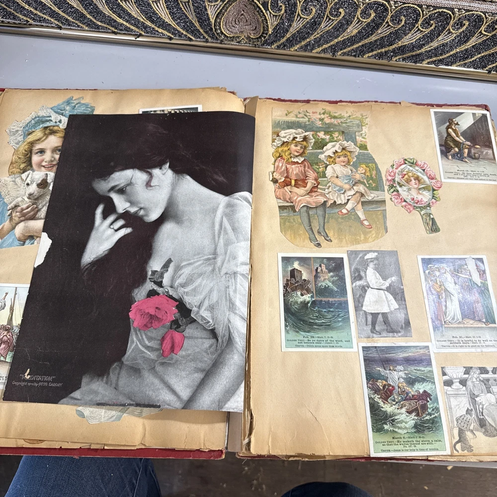 Dive into a bygone era with this exquisite Victorian scrapbook, a true treasure trove of 1800s and early 1900s ephemera. Its pages are filled with the beauty and charm of a century past, offering a rare glimpse into the everyday life and artistic expressions of the time. Carefully crafted in the United States, this scrapbook is not only a collector's item but also a wonderful piece for those who appreciate historical artifacts and the intricate aesthetic of the Victorian age. Its delicate balance of nostalgia and history makes it an ideal addition for collectors, historians, or anyone with an affinity for antique memorabilia.
