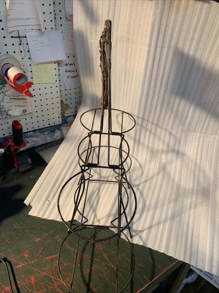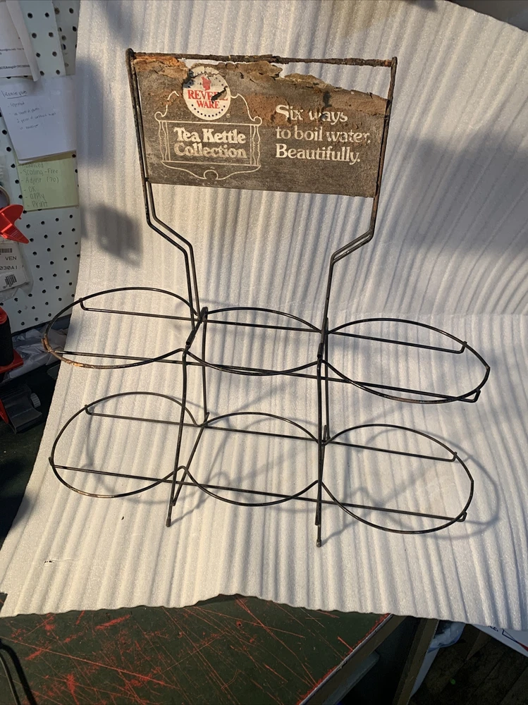 This is a great Vintage find! Found in the basement of an old hardware store that closed over 40 years ago. There is a little rust on the metal and the cardboard sign has wear to it. it could probably be cleaned a little more. rare piece. 25" wide, 9" deep and 23.5" to the top of the sign, it is 10,5" to the second rack. bottom rings diameters are 7.25", 8", 8.75" and the top rack is 5.75", 7.75", 6.75" See pictures for complete condition details. This item comes from a smokefree home, I accept paypal or you can pay when you pick up an item, any other payment questions please email me. I will combine/discount shipping charges on multiple purchases to help save you money. if you buy multiple items, please wait for me to send you an invoice with the discounted shipping on it. Buyer pays $39.99 for standard shipping & packaging costs, in US (lower 48 states) - shipping to hawaii, alaska, Canada, JAPAN,AND OTHER COUNTRIES is extra, please email me for international shipping rates, -----------------Insurance is an additional charge, please ask for insurance if you would like it. Insurance needs to be purchased by the customer, in order to have any coverage for shipments lost or damaged by USPS, FedEx, or UPS. I use Fed Ex ground, UPS, and USPS for shipping, please make sure you are able to receive packages via all these carriers. Please make sure to have the address you want this shipped to added as the authorized address on your paypal account. We can only ship to authorized paypal addresses and we do not accept emails to change the shipping address. ----------------- 30 Day money back return policy, if returned due to buyer changed their mind, the buyer will pay for shipping product back and the original shipping. The refund will be processed upon my receipt of the returned item and full purchase price will be refunded. The item must be in the same condition as when purchased. If item needs to be returned due to my error, I will pay for all shipping. any questions... Please Email me before bidding! Thanks for bidding! 125A