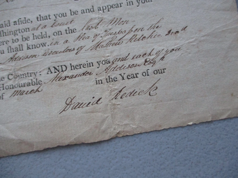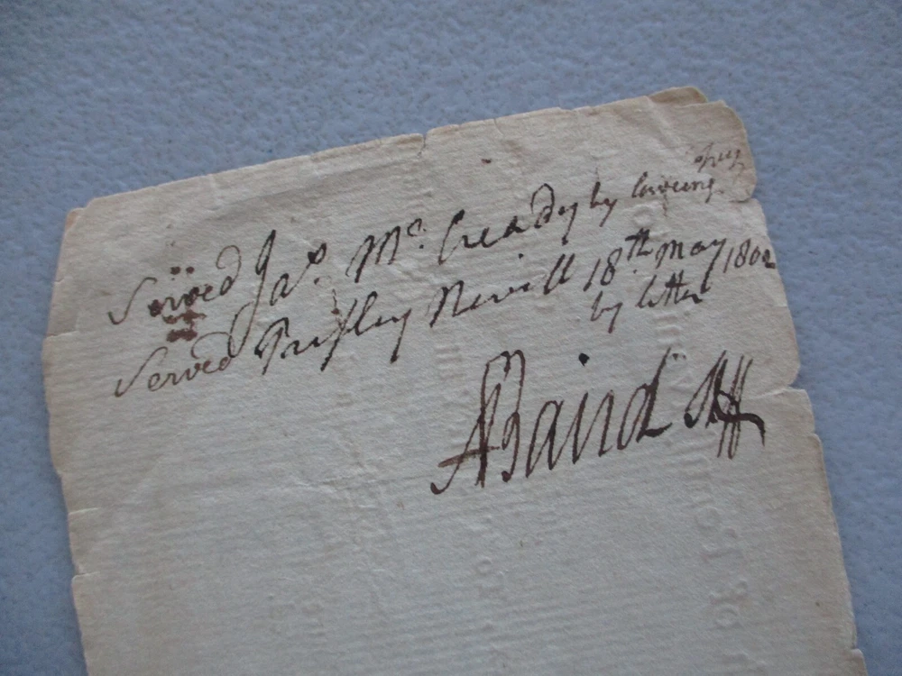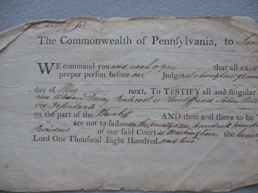 God Bless you and your family! HUGE HANDWRITTEN BEAUTIFUL DOCUMENT! MAKE SURE CHECK OUT OTHER LOW PRICED AUCTIONS GOING ON RIGHT NOW! Historical Document from 1802 ORIGINAL DATED! IN BEAUTIFUL BROWN INK. OVER 200 YEARS AGO! Col. Presley Nevil. Did not sign the document. His name is involved in the case. Like Indiana Jones says"It belongs in a Museum"! Signed by a very famous person. Named David Redick. He actually handed George Washington the Surrender document! This is not the same Document. But a great Court Document. The Georgia Rev. War Vet. Signed in 1802. PLEASE READ HIS BIO! For the Whiskey Rebellion! Which was happening in his own backyard! Washington,Pa! Whom fought for our Country. I will send the Biography. 12 1/2 X 3 3/4 INCHES. BONUS of another signature. Absalom Baird was a Sheriff. Then he went to the Senate. He has signed boldly on the reverse! He was also a Surgeon. In the Revolutionary War! Who fought in the Pa. Militia within the Revolutionary War. This comes from over 200 years ago! Now you can own history! Interesting document you do not see anymore. Outside of a Museum or Historical Society! Could be your Ancestors from the past! Have reunited families before with loved ones! Take it to your next family reunion! Maybe your related and know who they are? Or live here in this part of the world! True survivor piece here! (Highly frameable item here). Would make a great gift! Thanks for stopping by our Ebay auction site today! CHECK OUT MY 19,000 plus POSITIVE FEEDBACKS! FROM HAPPY SATISFIED CUSTOMERS! FOR PLEASURE OR A GIFT FOR SOMEONE! Looks so much better in front of you. Will not be disappointed! FREE SHIPPING ANYWHERE IN THE U.S. FREE SHIPPING ALWAYS TO YOU! We ship it out quickly after receiving your payment. Guaranteed to be a Genuine Authentic Original item as described in this description! Please make payment within three days. God Bless! Stay safe! Have a very Blessed Day!!! 17