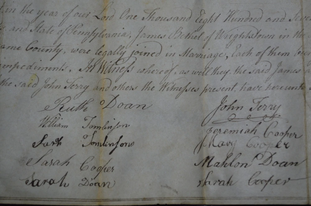 1807 Bucks County PA Handwritten Document Signed by Doan Family Members & Others