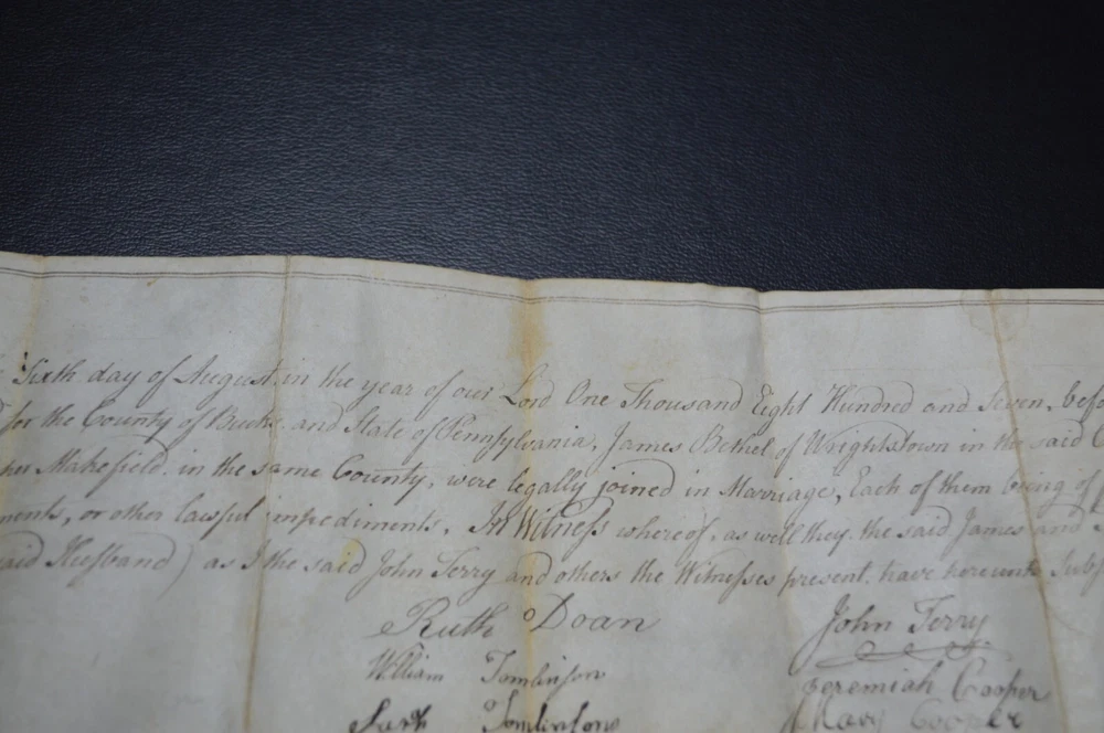 Family Names: Doan, Cooper, Bethel,& Others. Genealogical Interest. Handwritten Country/Region of Manufacture: United States Year: 1807 State: PA County: Bucks County Seller Notes: “Please see listing description conditions, terms, and uploaded images for more information.” Handwritten: Yes