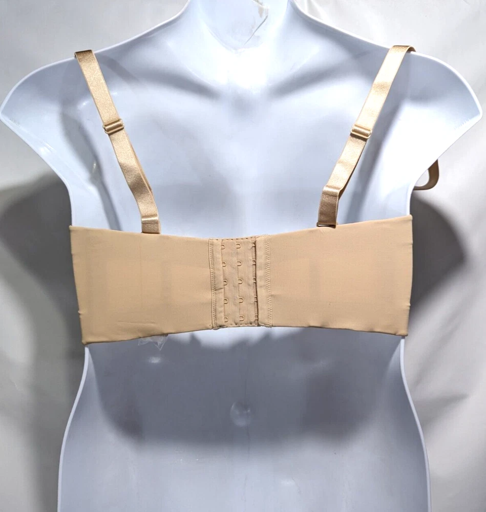 A lightweight strapless bra bares those shoulders while still giving you comfortable support. Switch up the straps to work under all your favorite tops and dresses or take them off entirely. Coverage & Lining: Medium coverage Lightly lined Straps & Hooks: Removable, adjustable straps can be worn multiple ways Hook-and-eye closure Fabric & Details: Smooth silky fabric disappears under clothes Wide wings and back band create a smooth look from every angle Molded cups for great support without extra padding Silicone free to minimize irritation and maximize comfort Hand Wash 89% Nylon/11% Spandex