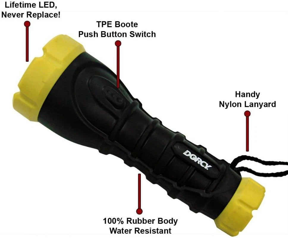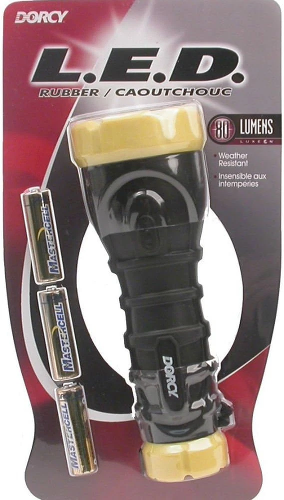 180-Lumen Weatherproof Rubber LED Flashlight with Non-Slip Grip and Sealed Push Button