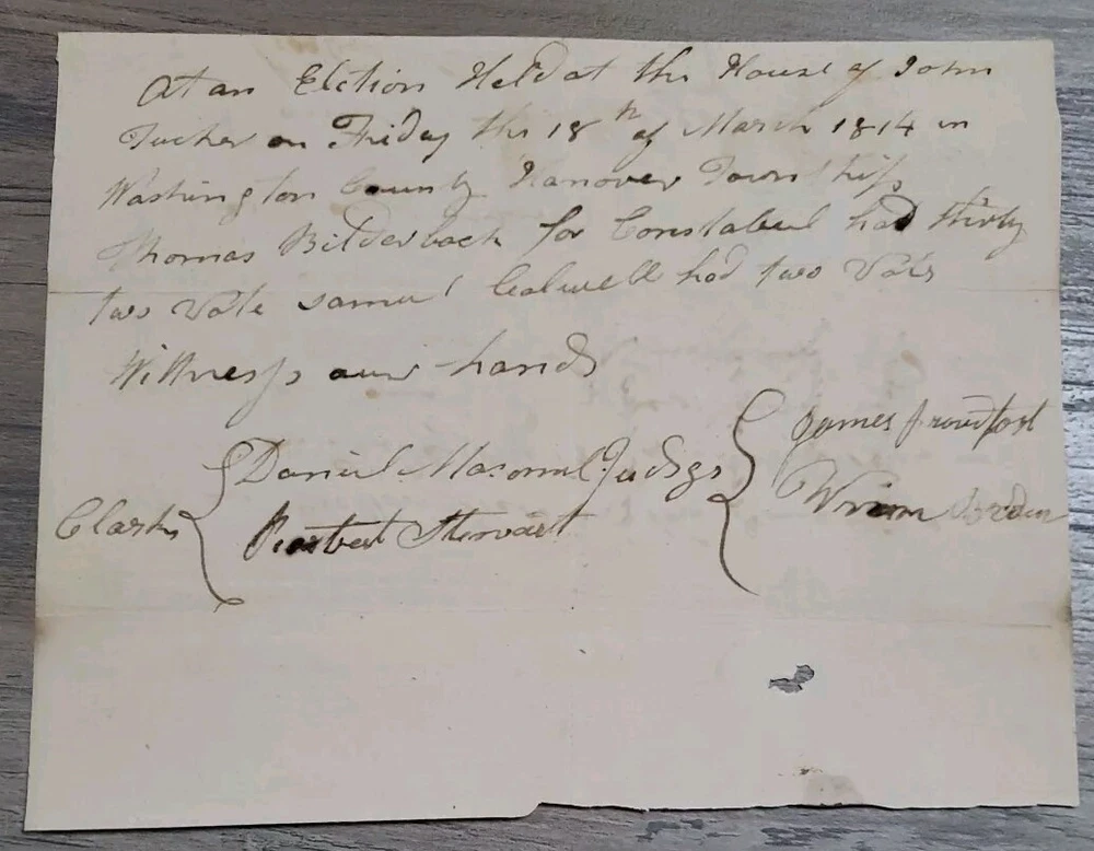 1814 Hanover Township Washington PA Election for Constable Ephemera