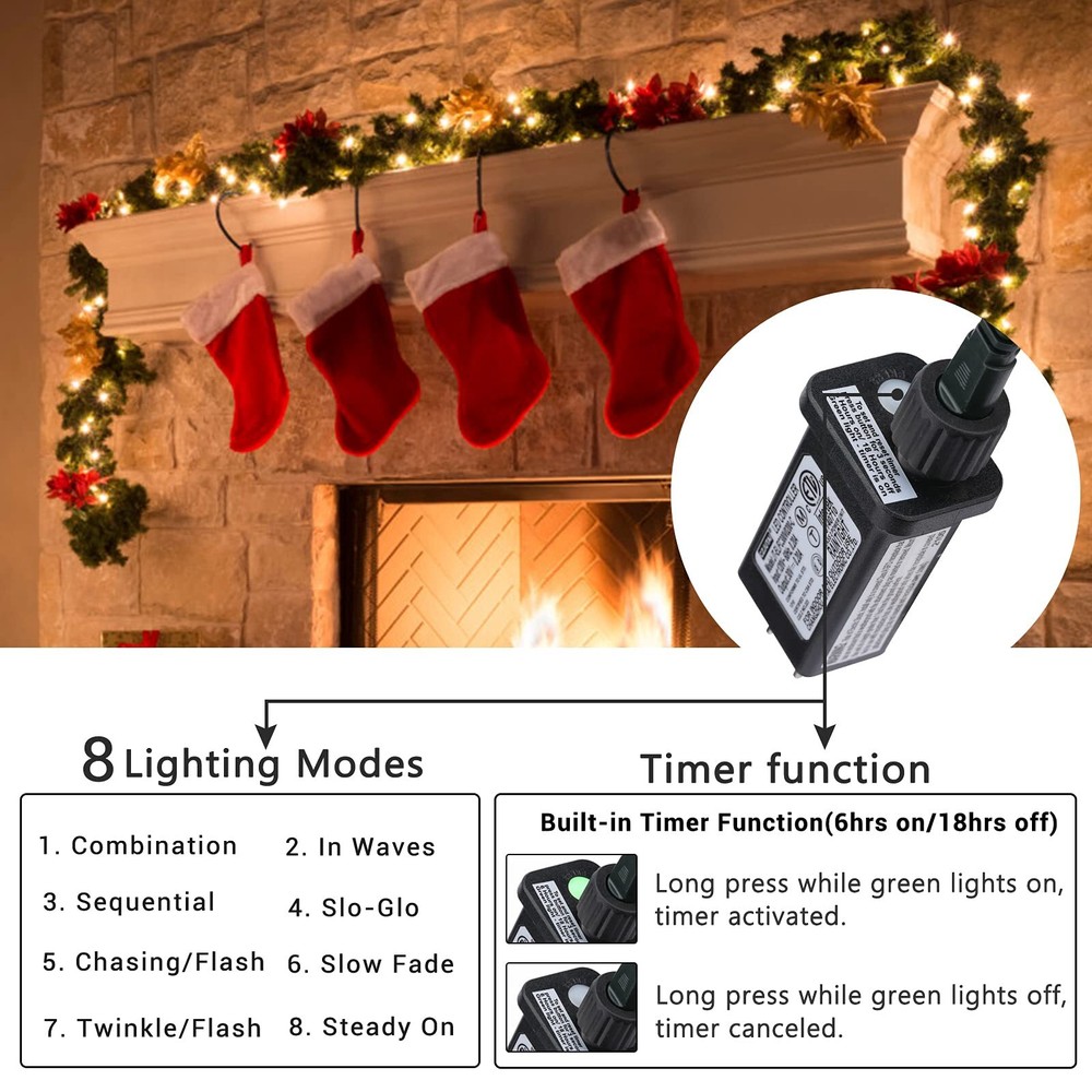181FT 500 LED Christmas Indoor Outdoor Decorative Lights, 8 Modes Waterproof Plug in Green Wire Fairy String Lights for Christmas Tree Party Wedding Garden Holiday Home Decoration (Warm White) [Super Long & Super Bright Christmas Lights] 181 ft Christmas light has 500 warm white LEDs .You can have an extra-long LED string light,which can decorate a larger area without much plugs and sockets.It use ultra-high intensity LEDs super bright but not dazzling.You can use it decorate anywhere you want.The lights lighten up your life and bring different feel to your life [8 Modes & Safety ] 8 modes for choosing: combination, in waves, sequential, slogs , chasing/flash, slow fade, twinkle/flash, and steady on.Using different modes to fit different scenes required. 30V Low Voltage Dark Green Wire fairy string lights, keep at a low temperature state after lighting up for a long-time use, ensure and maximize the safety. [Timer Function & Memory Function Christmas String Lights] Timing program (6 hours on, 18 hours off) provides a set-and-forget operation. A built-in memory chip automatic saves your last mode setting without having to reset the mode every day. [Waterproof & Widely Use LED Christmas Lights] IP44 Waterproof and high quality material designed Christmas lights perfect for both indoor and outdoor decorations, including heavy rain and snowy conditions.Just keep the adapter dry.Perfect for decorating Christmas Tree, Home, Patio, Gardens, Restaurant, Swimming Pool, Pergola, Terrace, Christmas Tree, Entrances, New Year,Wedding, Party, Festival, Valentine's Day. [Great Gifts & Guaranteed After Service] If for any reason you are not satisfied, please let us know and our customer service team will help you RETURN OR REFUND. This outdoor tree lights is the great gifts for your mom, child, parents, friends. Shipping We offer FREE shipping on all orders! We ship within Three business days of payment, usually sooner. We use a selection of shipping services such as UPS, FedEx, USPS etc. We only ship to the lower 48 states, no APO/FPO addresses or PO Boxes allowed. Local pickups and combined shipping options are not provided at this time. Return You can return a product for up to 30 days from the date you purchased it. Any product you return must be in the same condition you received it and in the original packaging. Please keep the receipt. Payment We accept payment by any of the following methods: PayPal Please pay as soon as possible after winning an auction, as that will allow us to post your item to you sooner! Feedback Customer satisfaction is very important to us. If you have any problem with your order, please contact us and we will do our best to make you satisfied. Contact Us If you have any queries, please contact us via ebay. We usually respond within 24 hours on weekdays. Please visit our eBay store to check out other items for sale! Thank you for shopping at our store.