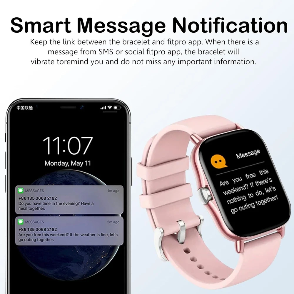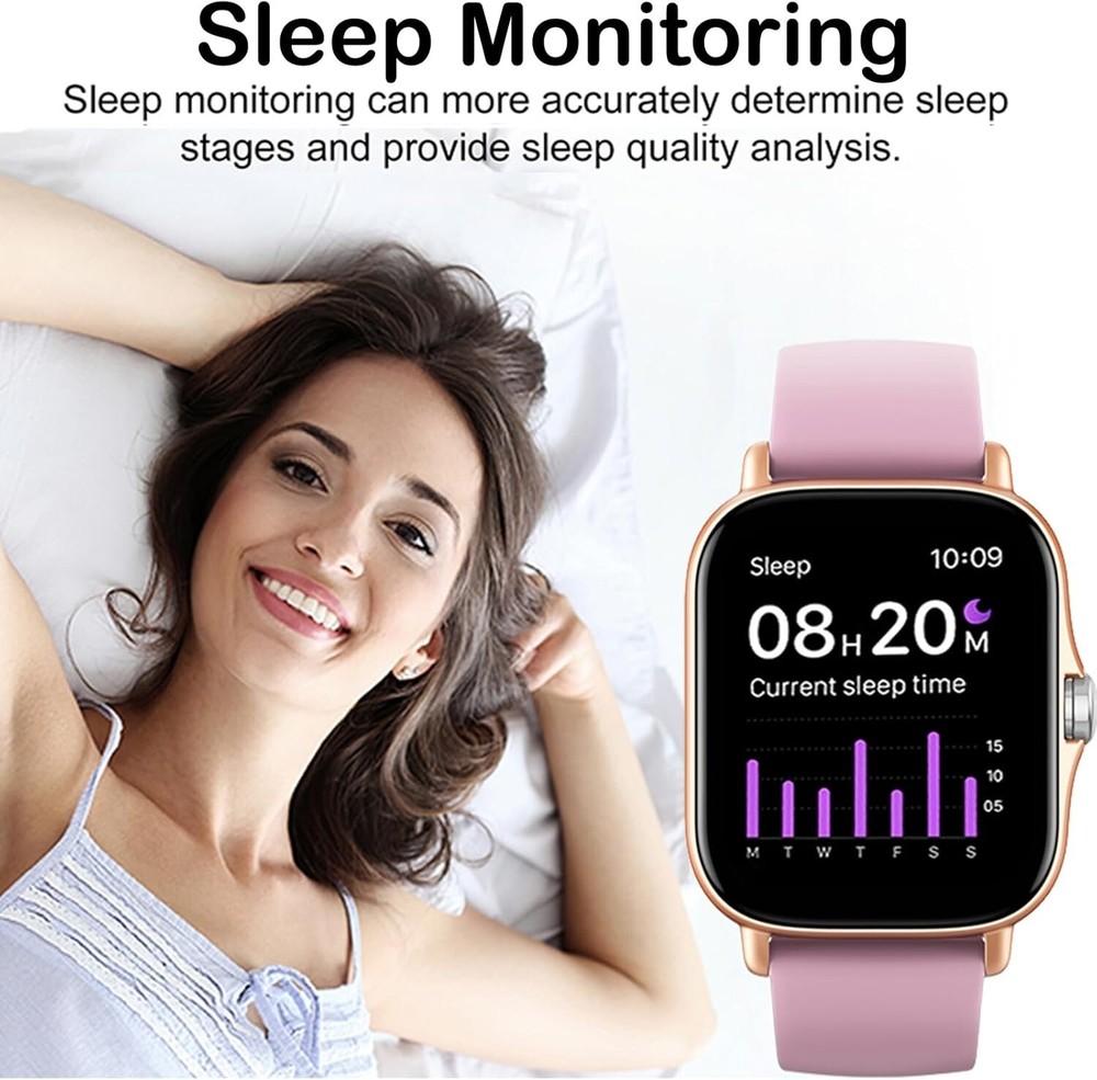 1.81" Upgraded Full Touchscreen Smart Watch for Android iPhones with Heart Rate Description : 1.81'' Touch Screen & Custom Watch Face - The 1.69'' screen smartwatch features 240*286 pixels HD full touch color screen, which can provide you with high quality touch and visual experience. After the bracelet is connected with the Mobile app, you can download all kinds of exquisite dials form the Mobile app. You can also turn the scenery and beautiful pictures in the mobile phone into the background of the dial to meet the diversified needs of your. 24/7 Heart Rate Monitor & Sleep Tracker - Smartwatch fitness tracker can provide all-around body data tracking, real time monitor your heart rate, blood pressure, blood oxygen (SpO2) and your deep, light sleep state which can help you better understand your health. NOTE:* This product is not a medical device, the measurement data and results are for reference only, not as a basis for diagnosis and treatment.* All-day Activity Tracking - This smart watch has 7 kinds of sports modes(bike riding, Running, Tennis, Strength training, Basketball, Volleyball, Football). During your exercise, activity tracker will record your data like, steps, calories burned, etc. Smart watch is waterproof rating, ensuring worry-free use even while washing hands, face, or engaging in sweaty activities. Smart watches for men women are the best choice for sports. NOTE: Do not use fitness tracker watch in diving, sauna or hot water. Smart Notifications - After the smart watch is connected with Mobile phone app, when there is a message from SMS or social app(WeChat、QQ、Facebook、Twitter、Line、Whatsapp、Instagram), the bracelet will vibrate to remind you. Stay connected with calls, text, other app notifications, and convenient tools like timer, Alarm clock, Stopwatch, Music controller, Weather, Sedentary reminder, Find your phone, etc. to meet your daily use. Smartwatches For Android IOS Phones - The sports watch is compatible with iOS 9.0 and Android 5.0 and above devices(not for PC or tablet). Download and install the Mobile phone app, bind the smartwatch to your cell phone. You can make and receive calls on the watch or online music, and you can receive alerts of the SMS, incoming calls, and SNS. Long Battery Life & Multi-Functions - When fully charged in 2.5 hours, it lasts for 7 days, with standby time exceeding 30 days. You can relax and enjoy more than a week of travel or work. Smart watches and "Fitprot" app have many practical tools, such as weather forecasts, stopwatch, timer, music control/ play, adjustable brightness, find phone/ watch, smart alarm clock, camera control, sedentary reminder, ect.NOTE:Please read the manua l carefully before using these functions to understand how to connect to bluetooth.