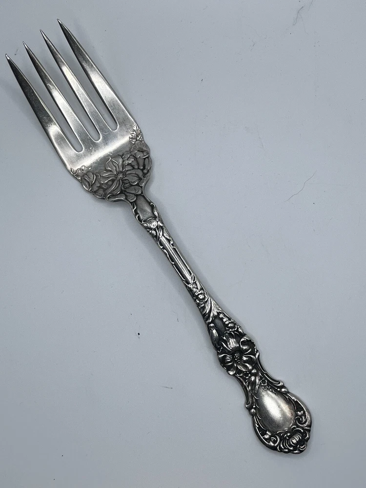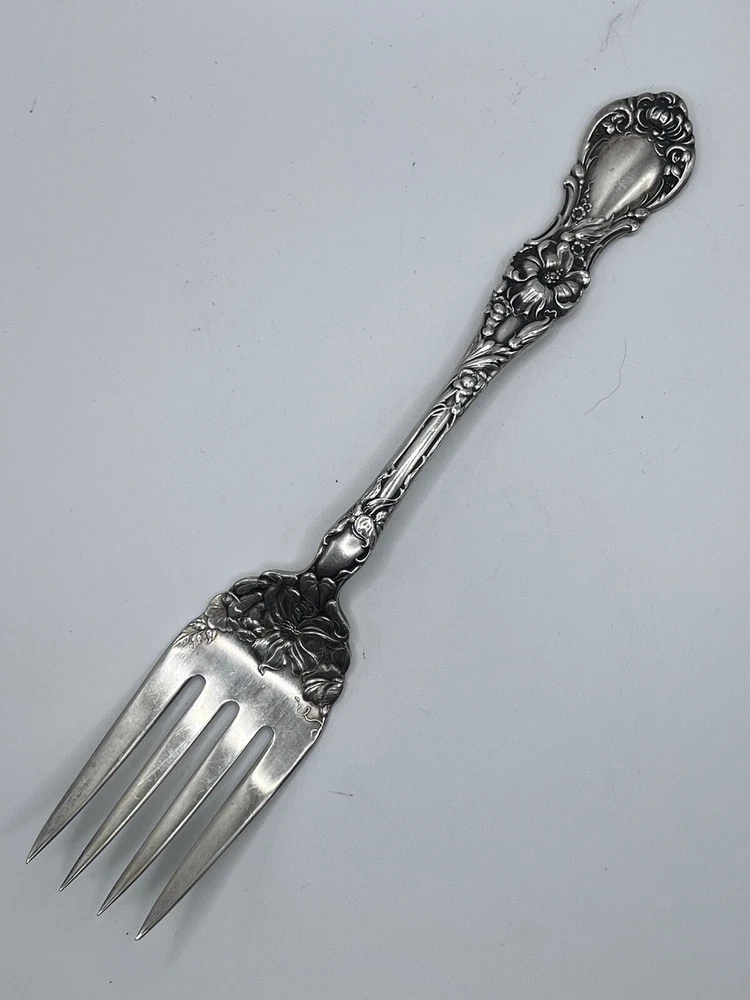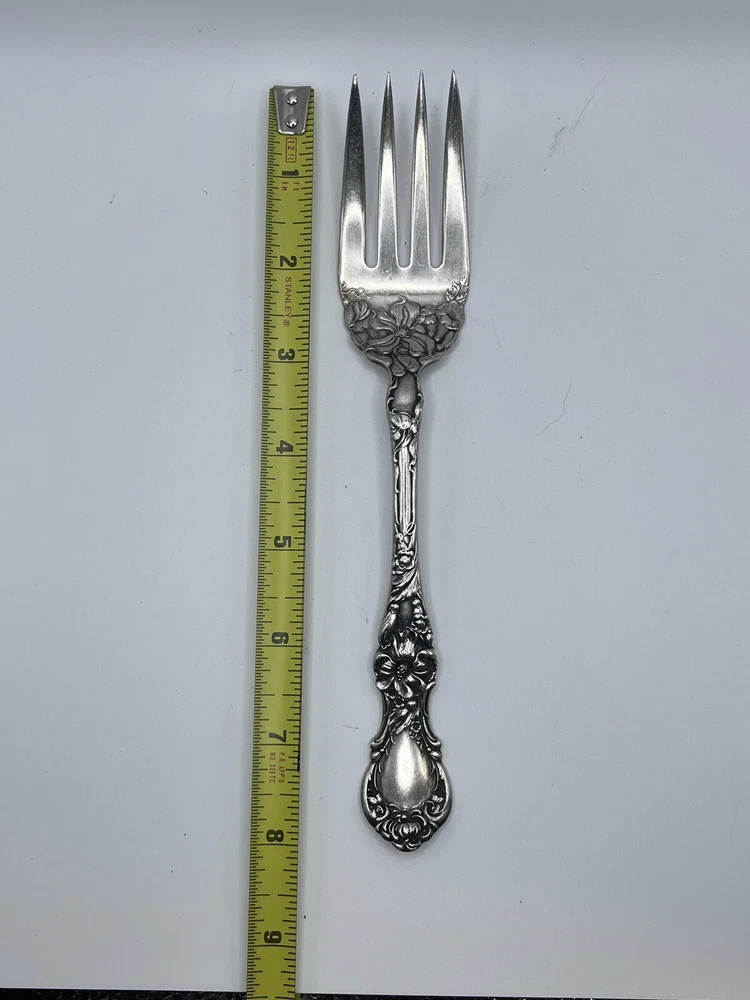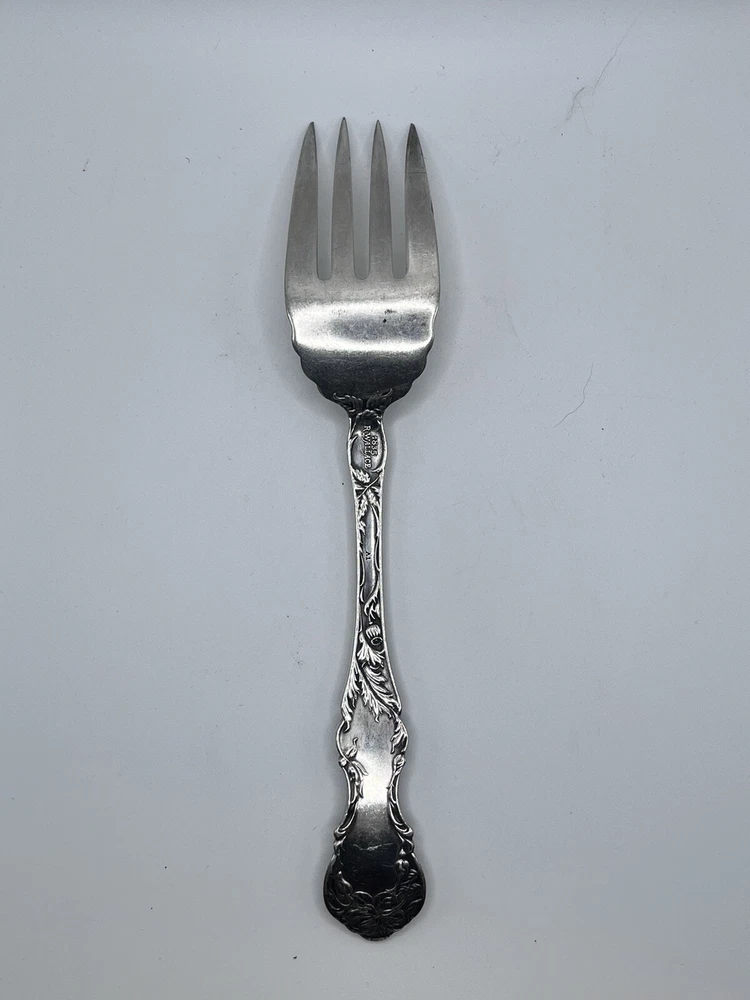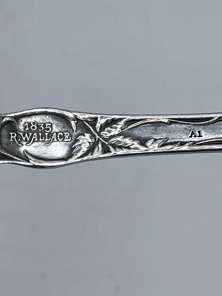 This 8-inch serving fork is a beautiful piece of silver plate from the famous R. Wallace brand. It is perfect for anyone interested in antiques, silver, or silverplate flatware. The fork is made of high-quality materials and features intricate detailing that is sure to impress any collector. It is an excellent addition to any home or collection and has an age of 1835. This piece is sure to be a treasured possession for many years to come.