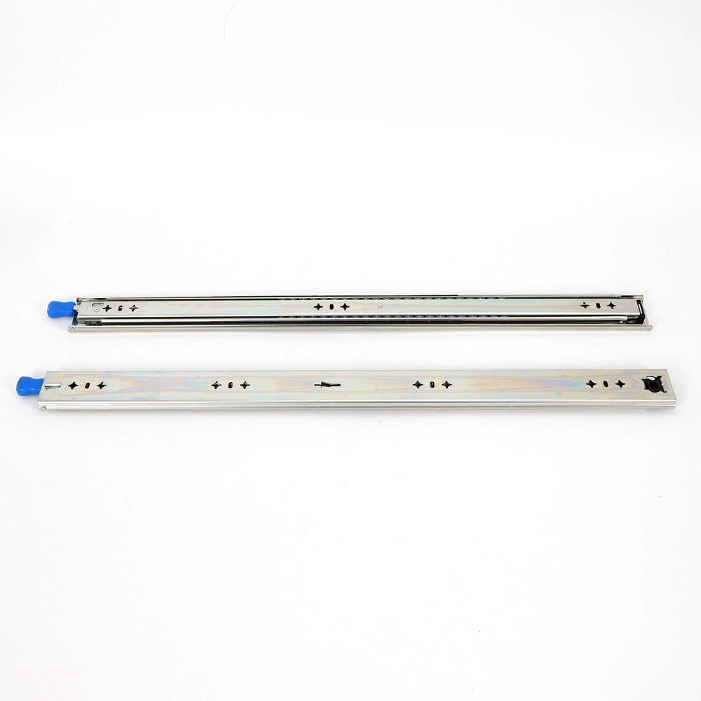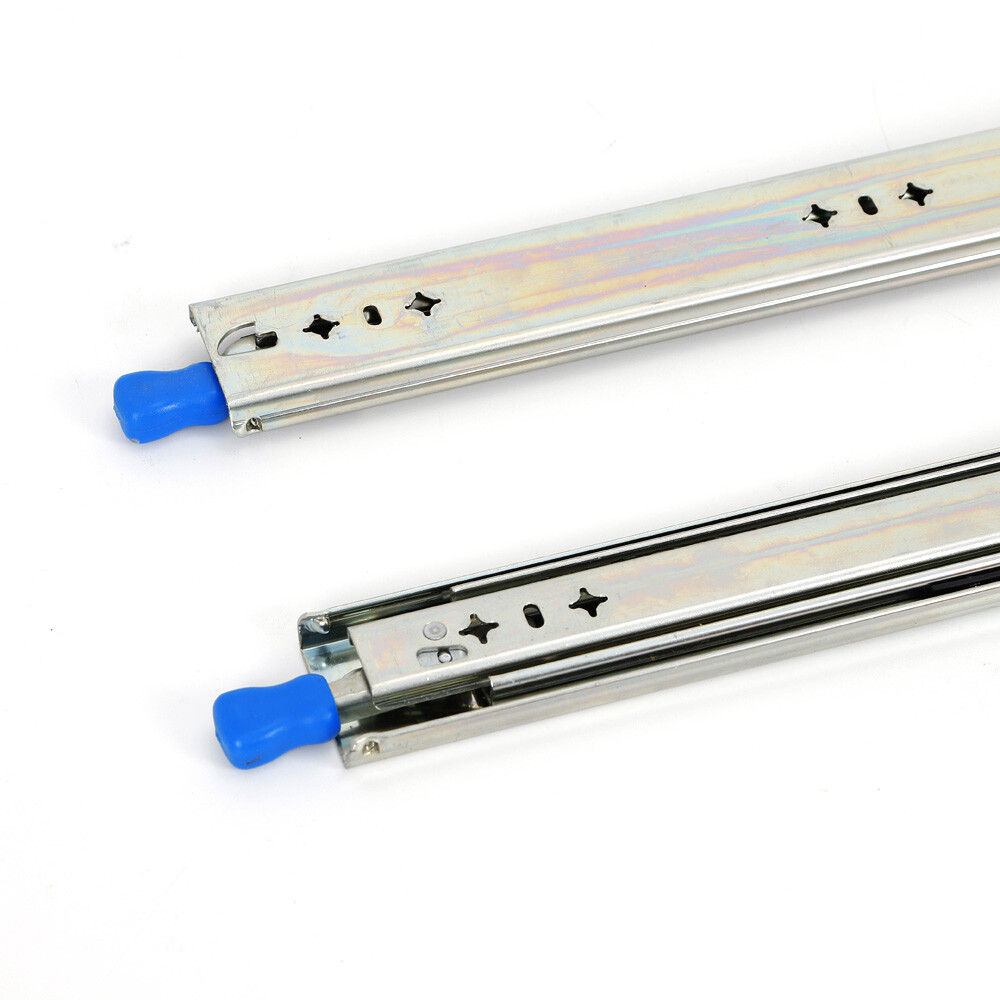 1. These heavy-duty drawer slides are a game-changer! The zinc coating keeps them rust-free, and the anti-skid rubber pads ensure smooth, secure operation. The locking mechanism is perfect for heavy loads—I’ve tested them with over 100kg, and they hold up flawlessly. The three-section design provides full extension without sagging, making them ideal for industrial or workshop use. No more worrying about drawers sliding open unexpectedly—these rails stay put! Highly durable and worth every penny.
