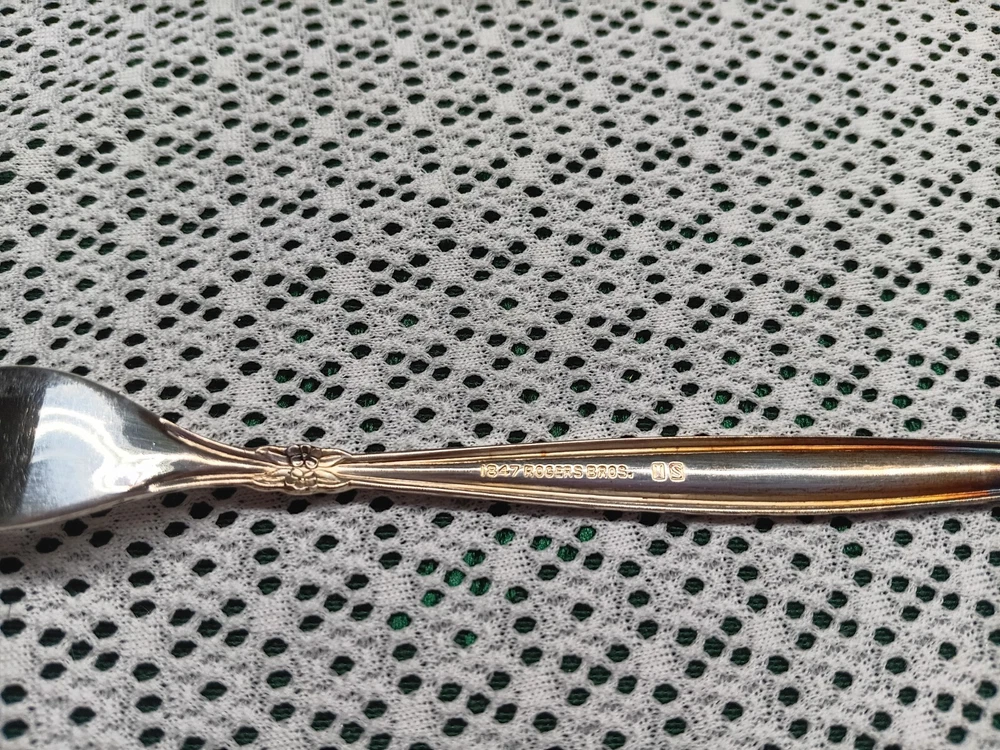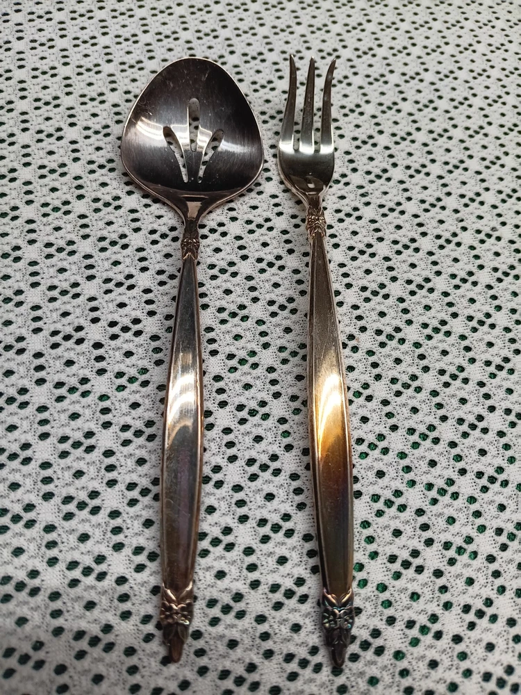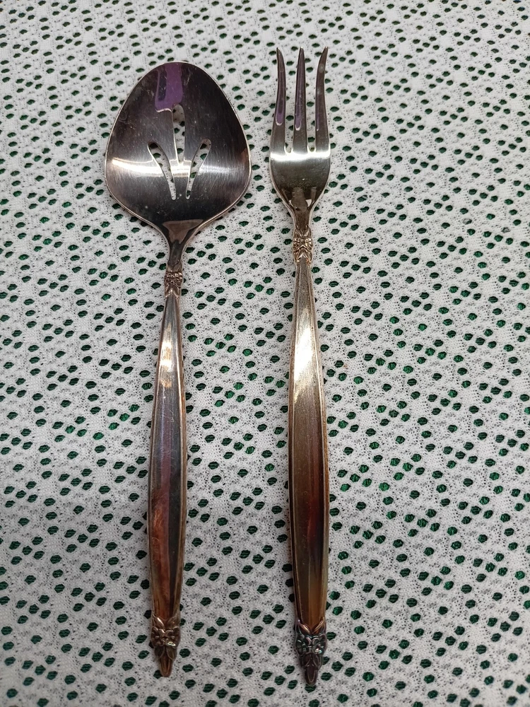 1847 Rogers Bros GARLAND Condiment Spoon & Fork Silverware Flatware Set. Approx 6"