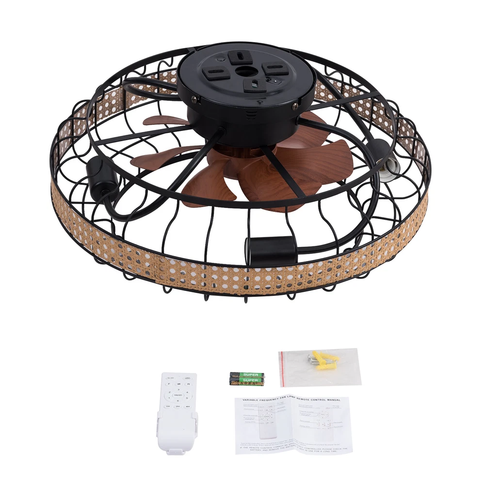 Description This ceiling fan light allows you to feel the bright light and enjoy the coolness at the same time. It has six gears of wind speeds with a timing function to meet your daily usage needs, and you can also reverse the direction of fan rotation in winter. It can be integrated with different decoration styles and is ideal to create an excellent life and sleep environment to accompany you in all seasons. Key Features Embrace Smart Life: With the intelligent remote control, you can freely adjust the wind speed (6th gear), lighting, and setting time (1/2/4 hour) while lying in bed within 16.4ft, avoiding catching a cold and saving electricity bills. Healthy and Energy-saving: The ceiling fan light provides more comprehensive air circulation and cooling, thereby reducing the fr 18.5 Inch Ceiling Fan Light Living Room Ceiling Fan Light With Remote Control US Description This Ceiling Fan Light Allows You to Feel the Bright Light and Enjoy the Coolness at the Same Time. It Has Six Gears of Wind Speeds with a Timing Function to Meet Your Daily Usage Needs, and You Can Also Reverse the Direction of Fan Rotation in Winter. It Can Be Integrated with Different Decoration Styles and Is Ideal to Create an Excellent Life and Sleep Environment to Accompany You in All Seasons. Key Features Embrace Smart Life : with the Intelligent Remote Control, You Can Freely Adjust the Wind Speed (6th Gear), Lighting, and Setting Time (1/2/4 Hour) While Lying in Bed Within 16.4ft, Avoiding Catching a Cold and Saving Electricity Bills. Healthy and Energy-saving: the Ceiling Fan Light Provides More Comprehensive Air Circulation and Cooling, Thereby Reducing the Frequency and Time of Air Conditioning Use, Saving Energy, and Reducing Expenses. It Can Avoid Direct Blowing and Reduce the Risk of Air Conditioning Diseases. Build to Last: It Is Made of Iron, Abs, and Bamboo and Adopts a Painting and Hand-woven Processes, Which Is Corrosion-resistant, Strong, Durable, and Not Easy to Deform, so It Can Remain Beautiful and Practical for a Long Time. High Safety: Fan Blades Are Hidden in a Semi-enclosed Lampshade, Which Can Allow for Unobstructed Lighting and Air Supply to Avoid Accidents Caused by Getting Caught in the Blades. the Multiple Heat Dissipation Holes and Wide Voltage (85-265v) Design Can Effectively Ensure Safety and Extend Product Life, so You Can Use It with Confidence. Multiple Functions: Integrating Lighting and Fans, Illuminating the Space While Balancing Room Temperature, It Has Become a New Choice for Home Fashion! You Can Also Reverse the Direction of the Fan Rotation in Winter, Blowing Hot Air from the Top into the Room and Increasing the Indoor Temperature. Classic Appearance: Classic Colors, Lampshade with Handmade Bamboo Weaving, and Round Shape Make It Eye-catching and Can Be a Good Decoration to Blend in with Different Decor Styles and Add Color to Your Room. Easy to Clean : the Smooth Surface and Simple Structure Allow You to Clean It with a Dry Cloth, Saving You Lots of Time and Effort. Excellent Gift: the Beautiful Appearance and Good Practicality Make It a Great Gift for Parents, Friends, and Lovers on Birthdays, Holidays, and Housewarming. Protective Packaging: the Foam Can Effectively Reduce the Normal Impact and Ensure That This Item Is Fully Delivered to You to the Greatest Extent. Guaranteed Customer Service: We Aim to Provide Quality Products and Services. If You Have Problems, Please Feel Free to Contact Us. We Will Reply and Solve the Problem for You As Soon As Possible. Details Round Base: the Large Round Base with a Diameter of 7.09in Increases Stress Area, and Can Make the Item Fixed Firm Without Falling Easily. Pure Copper Motor: It Has Stable Performance, Low-temperature Rise, and 35db Low Noise, Providing a Quiet Working and Sleeping Environment. Standard Lamp Holder: the Standard E26 Lamp Holder Can Support the Use of Leds, Halogens, Etc., Making It Very Convenient for You to Purchase and Replace. Application It Is Ideal for the Living Room, Dining Room, Kitchen, Study Bedroom, Small Bedroom, Conference Room, and Other Places of 107.64-161.46ft². It Is Also Suitable for Sloping Ceilings. Specifications Color: Brown+Black Material: Iron, Bamboo, Abs, Copper Style: Classic Process: Painting, Hand-woven Lamp Source Type: 4* E26 Bulbs(Not Included) Motor Type: Pure Copper Motor Assembly Required: Yes Mounting Type: Ceiling Mount Number of Fan Blades: 7 Number of Items: 1 Control Method: remote, Wall Switch(Not Included) Remote Control Distance: 3-5m/9.84-16.4ft Voltage: 85-265v Power: 40w Battery Type: 2*Aaa Batteries(Included) Wind Speed Gears: 6 Timing: 1/2/4h Efficiency: E Suitable Area: 10-15㎡/107.64-161.46ft² Noise: 35db Base Diameter: 18cm/7.09in Overall Lampshade Diameter: 46cm/18.5in Lampshade Opening Diameter: 30cm/11.81in Package Included 1* Ceiling Fan Light 1* English Manual 1* Remote Control 2* Aaa Batteries All Accessories for Assembly Notes For a Safe and Secure Installation, Please Ensure That the Electrical Box Is Firmly Mounted and Properly Attached to a Structural Part of the Building. Please Make Sure That All Wires Are Connected. When Unpacking, Be Careful Not to Pull with the Wires As a Bad Connection May Result. Please Do Not Turn on the Power Until Fully Assembled. We Recommend Installation by Professionals. This Product Does Not Include a Light Bulb. Please Prepare Four E26 Bulbs in Advance. Please Do Not Install the Lamp Next to the Air Conditioner or Heater, Which Will Affect the Service Life of the Lamp. Please Wear Electric Insulation Gloves(Not Included) and Avoid Scratching the Surface of the Lamp Plate and the Electric Wire When Installing. Please Make Sure That the Power Supply Has Been Cut off Before Installation, and Conduct a Power Test Before Installation. Please Use the Lamp Within the Applicable Voltage Range and Clean Lamps Regularly. Please Cut off the Power Supply When You Clean the Light or Replace Light Bulbs. Please Wipe with a Sof