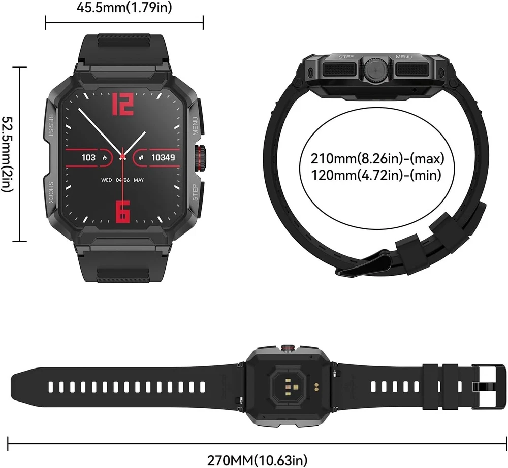 -Brand New - Never Used - Questions: Feel free to ask any Questions - BOX: Never Opened - DESCRIPTION: ✅1.85 " MULTI-FUNCTIONAL MILITARY SMART WATCH for MEN --anyloop Explorer smart watch comes with a 1.85 " big full touch screen, features include custom dials, brightness adjustment, make/answer calls, calculator, voice assistant, step count, calorie, stopwatch, music/camera control, weather forecast, calendar, breathing exercises, alarm clock, message notifications, find phone, sleep tracking, and more surprise function for your experience! ✅DIAL/ANSWER CALLS & NOTIFICATIONS --anyloop men's smart watch allows you to stay connected anywhere anytime. With high-quality speakers, microphone, Bluetooth 5.2 you can make and answer calls, receive notifications, and listen to music all from your wrist. freeing you from your phone, especially when jogging driving, or cycling. ✅100+ SPORTS MODES & FITNESS TRACKERS --The Anyloop fitness watches for men is the perfect fitness partner, offering over 100 sports modes(80+ avaliable in app), including walking, running, cycling, basketball, and mountain climbing, to meet all your daily needs. You can monitor your exercise status, including steps, calories, and distance, and track your progress through the 'anyloop' app. This app provides you with detailed information about your workout performance, making it easier to achieve your fitness goals. ✅ALL-ROUND HEALTH MONITORING --The Fitness Watch is equipped with blood oxygen, 24-hour heart rate, and sleep patterns monitoring features, allowing you to keep track of your vital signs anytime. It also offers sedentary reminder, drinking water reminder and stress testing functions,Let you meet challenges in the best condition ✅LARGE CAPACITY BATTERY & IP68 WATERPROOF --The anyloop tactical smart watch is crafted from special composite materials and metal, making it durable, crack-resistant, and dust-resistant, suitable for harsh environmental conditions. IP68 waterproof standard has no problem wash hand or swimming. The outdoor smart watch is equipped with a large capacity 400mAh battery. Up to 7 days of continuous use without charging anxiety. - OFFERS: Reasonable offers are considered, LOWBALLERS, Best price and Lowest askers will be ignored - all sales final/no refunds/ no exchanges/ no returns - Disclaimer: I do not own the brand's trademarks, logos, pictures, or products posted. I do not intend to infringe on copyright. I find such content available on the internet. Contents are considered fair use. -Smart Watch for Men(Answer/Make Call),1.85" 400mAh Military Smartwatch IP68 Waterproof Outdoor Fitness Watch with Heart Rate Blood Oxygen Sleep Monitor Compatible with iPhone and Android Phones