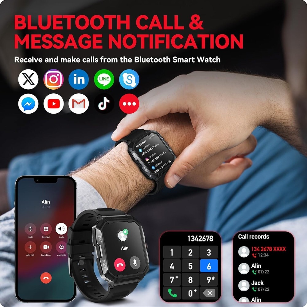 This smartwatch is a total game-changer! The 1.85" screen is crisp and responsive, making calls and tracking fitness a breeze. Love the military-grade durability and long battery life—it handles workouts, notifications, and even music control without missing a beat. The extra features like weather updates and sleep tracking make it feel premium. Perfect for active lifestyles!