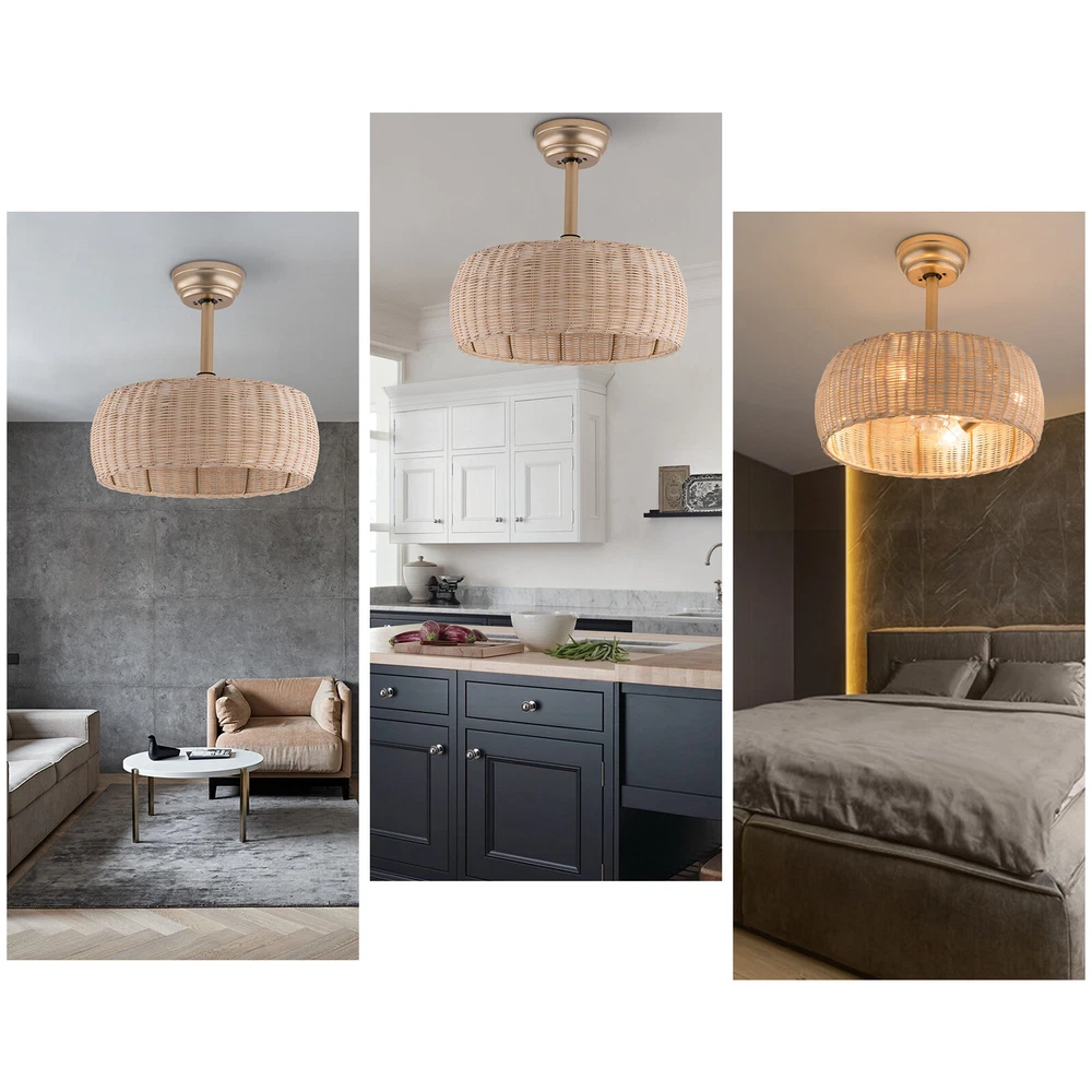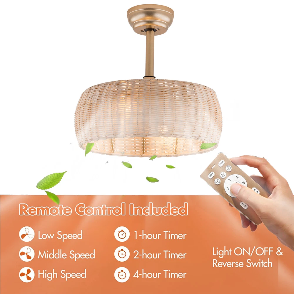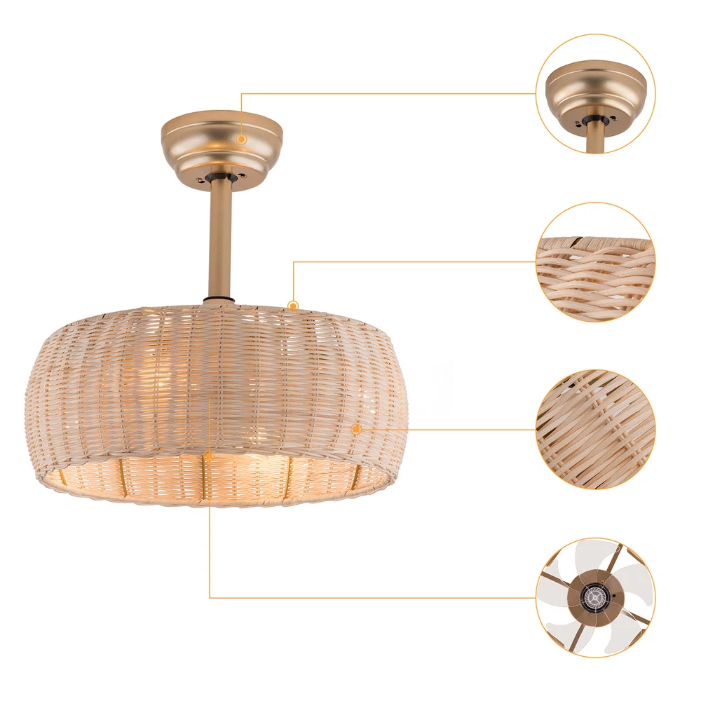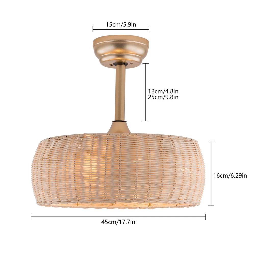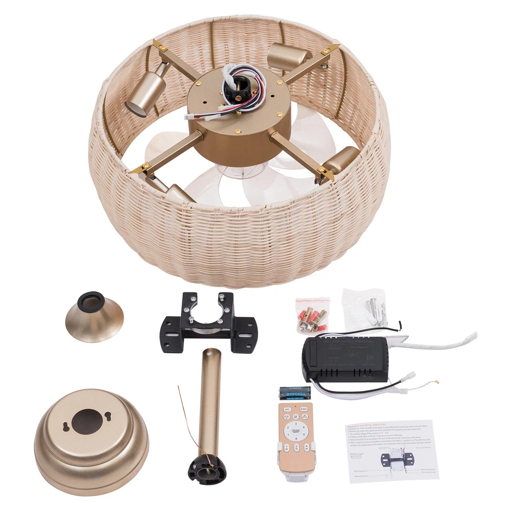 Specification Color: Natural&Gold Style: Modern Shape: Cage Material: Iron, Bamboo, ABS Finish Type: Spray Paint, Hand Woven Efficiency: E Assembly Required: Yes Number of Blades: 5 Number of Items: 1 Lamp Source Type: 4* E26 Bulbs(Not Included) Battery Type: 2* AAA Batteries(Included) Light Direction: Adjustable(Horizontal ) Power and Plug Description: AC Mounting Type: Ceiling Mount Motor Type: Pure Copper Motor Plug Type: US Standard Rotation Mode: Forward Rotation, Natural Wind, Reverse Rotation Wind Speed Adjustment: 6 Timing: 1h, 2h, 4h Voltage: 85-265V Motor Power: 40W Noise Decibel: 35dB Remote Control Receiving Range: 3m/ 9.84ft Applicable Height: About 2.7m/ 8.86ft Illuminated Area: 10-15m²/107.58-161.38ft² Base Diameter: 15cm/ 5.9 in Length of Conn 18.5in Boho Ceiling Fan Light Chandelier Lamp Bedroom Living Room kitchen Description Description Add style and functionality to your space with hand-woven rattan cage style lampshade ceiling fans, upgrade your home decoration with beautiful and practical Bohemian style embedded ceiling fans, and perfectly match your bedroom, dining room, living room, and kitchen. Key Features •Build to Last: High-quality ABS, iron, and bamboo are strong and durable to ensure that it maintains excellent function for a long time and withstands the test of time. • Excellent Performance: The fan blades are aerodynamically designed to provide stable and powerful air delivery, while its pure copper motor has greater airflow and air delivery capacity and less noise (35dB) compared to the power of traditional motors, saving you energy and power. • Easy to Operate: You can turn this chandelier on/off through the wall switch, or adjust it within a distance of 9.84ft using a remote control, whose convenient switches and buttons are very convenient for you to operate, allowing you to lie in bed and control it without getting up. • High Transmission: The hand-woven bamboo shade is highly translucent while unobstructed and horizontally-adjustable light pours down, spreading light throughout the room, allowing it to illuminate an area of 107.58-161.38 square feet and create a warm ambiance. • Adjustable Design: The 1/2/4 hour timer-off, 6 speeds, and 3 fan modes(forward rotation, natural wind, reverse rotation) configuration for user convenience, bringing you the most comfortable cool breeze and preventing colds and wasted electricity. • Healthy and Energy-saving: The fan can reduce the frequency and time of use of air conditioning, saving energy, reducing expenses, and avoiding direct blowing, reducing the occurrence of air conditioning disease. In winter, you can also reverse the direction of the fan to blow hot air from the top into the room to improve the indoor temperature. • Easy to Install: It can be installed not only on flat ceilings but also on sloping ceilings, while all the components are included in our package with simple and clear instructions, so you can easily follow the instructions for a quick installation. • Easy to Clean: The smooth ABS surface and iron light stand with spray painting treatment makes it easy to clean. You only need to use a towel to wipe off the dust and dirt. • Wide Application: The two rods(4.8in, 9.8in) make it suitable for a variety of ceiling heights while ensuring better lighting and air circulation effect. And it supports a wide voltage, which can adapt to different voltage environments. • Ideal Gift: Its beautiful appearance and excellent lighting effect make it an ideal gift for family members, or friends who have a housewarming • Quality Service: We are honored that you have chosen our product. We have sufficient confidence in the quality of the product so that you can buy it confidently. But if you have any questions, you can contact our customer service, he will patiently answer and solve your problems. Details Rounded Edges: Compared to stiff right angles, the rounded burr-free edges make it more comfortable to touch while better caring for your skin. Round Base: Its 5.9-in-diameter round base can increase the stress area and ensure stability. Standard E26 Base: It supports E26 bulbs (not included), such as LED, halogen, and Edison so it can meet your various needs. Application Suitable for ceiling heights of 8.86ft and room sizes of 107.58-161.38ft², it is ideal for farmhouse, vintage or bohemian room styles and is a great match for your bedroom, dining room, living room and kitchen. Specification Color: Natural&Gold Style: Modern Shape: Cage Material: Iron, Bamboo, ABS Finish Type: Spray Paint, Hand Woven Efficiency: E Assembly Required: Yes Number of Blades: 5 Number of Items: 1 Lamp Source Type: 4* E26 Bulbs(Not Included) Battery Type: 2* AAA Batteries(Included) Light Direction: Adjustable(Horizontal ) Power and Plug Description: AC Mounting Type: Ceiling Mount Motor Type: Pure Copper Motor Plug Type: US Standard Rotation Mode: Forward Rotation, Natural Wind, Reverse Rotation Wind Speed Adjustment: 6 Timing: 1h, 2h, 4h Voltage: 85-265V Motor Power: 40W Noise Decibel: 35dB Remote Control Receiving Range: 3m/ 9.84ft Applicable Height: About 2.7m/ 8.86ft Illuminated Area: 10-15m²/107.58-161.38ft² Base Diameter: 15cm/ 5.9 in Length of Connecting Rod: 12cm/ 4.8in, 25cm/ 9.8in Lamp Body Size (D*H): 45*16cm/ 17.7*6.29 in Package Included 1* Boho Ceiling Fan 1* Remote Control 2* AAA Batteries 1* English Instruction All Accessories for Assembly Notes Regular cleaning of the fan light can extend its life and ensure its proper operation. It can be cleaned with a soft dry cloth and neutral detergent, avoiding the use of acid, alkali or corrosive cleaning agents. Please allow the slight color difference caused by the shooting light and 1-3cm error due to manual measurement, and make sure you do not mind before ordering. Payment Delivery details Terms of sales About us Contact us Payment We accept ebay payment 。 Fees such as import duties, taxes are not included in the item price or shipping co