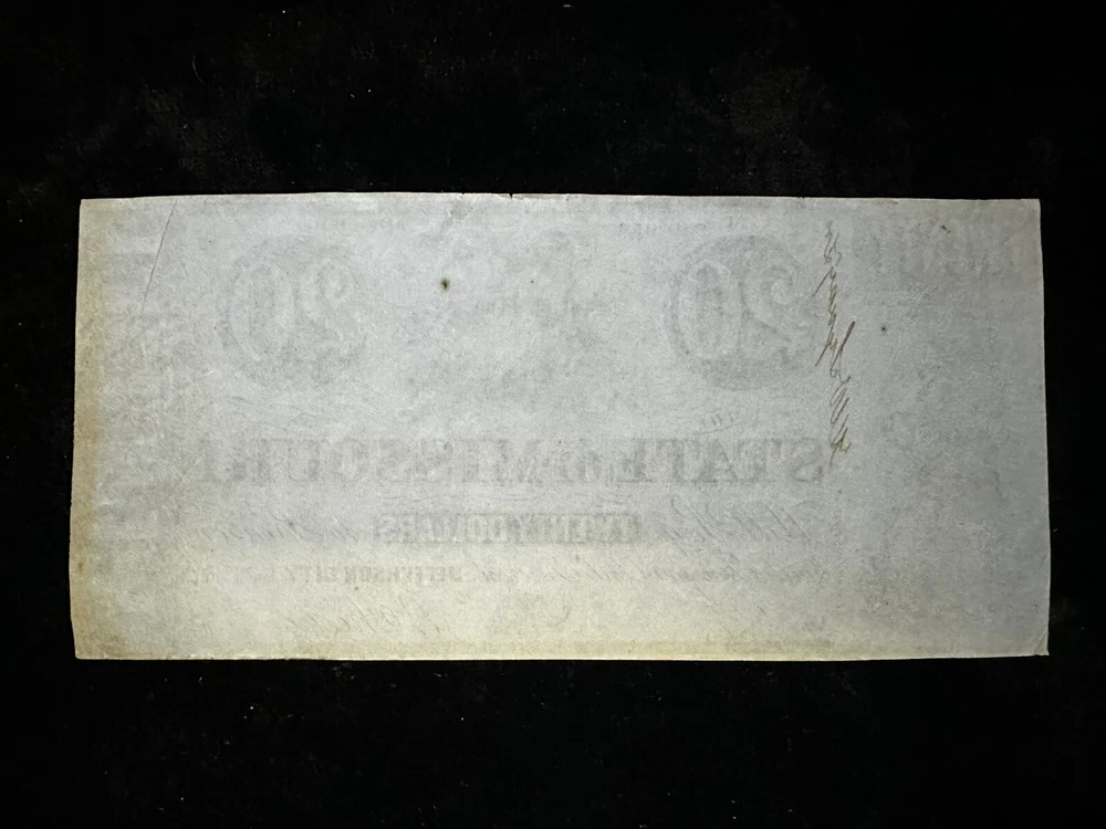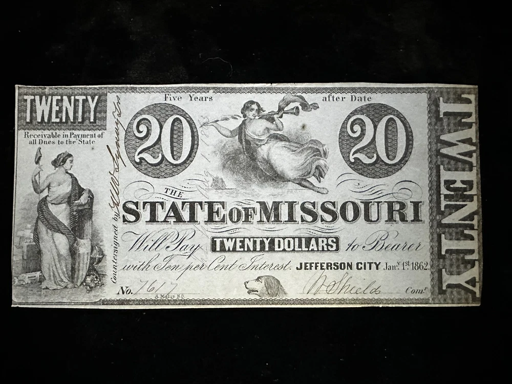 1862 Cr.1 $20 The State of MISSOURI Note - CIVIL WAR Era - Nt1418