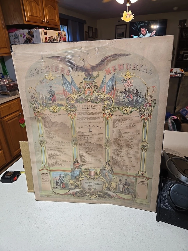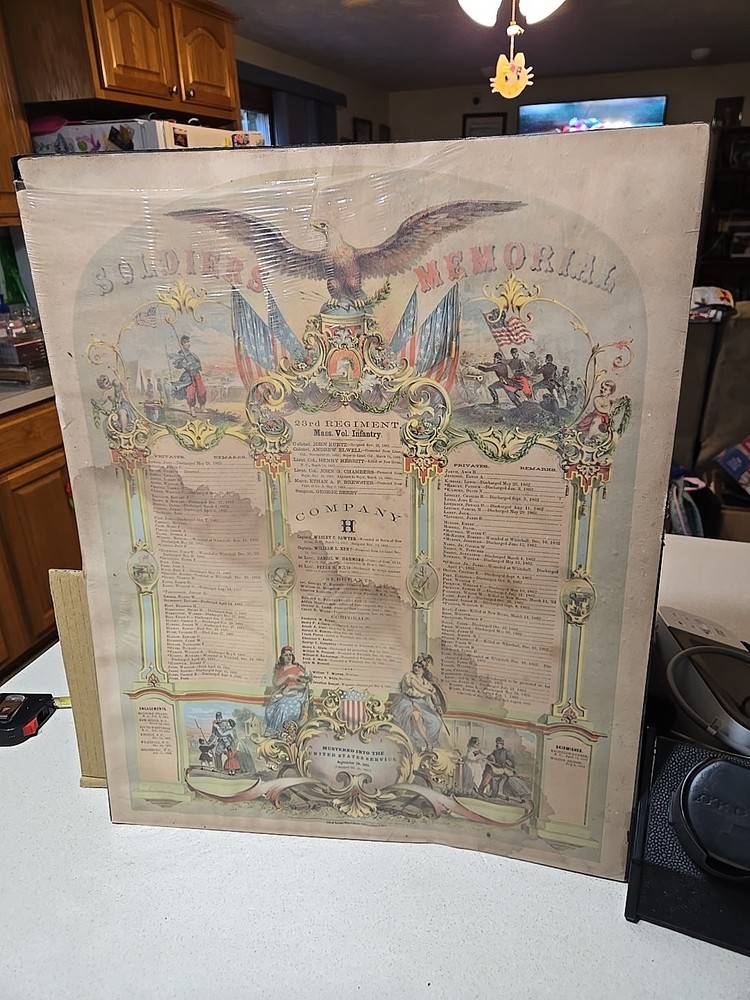 1863 ORIGINAL CIVIL WAR MEMORIAL DOCUMENT MASS VOL. INFANT COMPANY H 23 REGIMENT. Condition is Used. Shipped with USPS Ground Advantage.