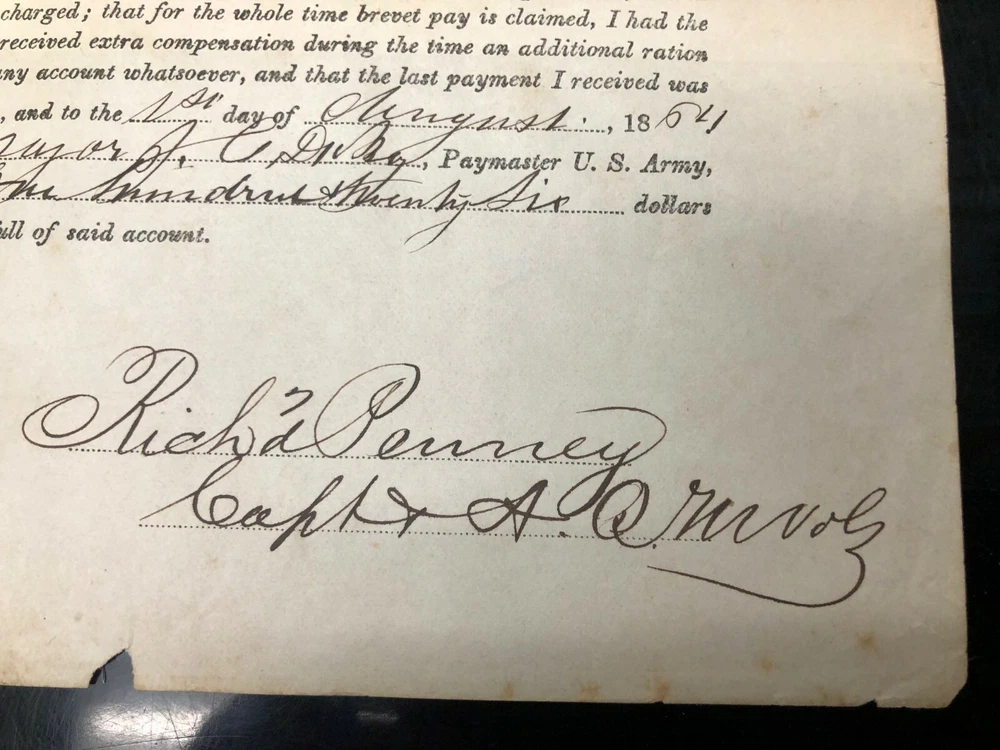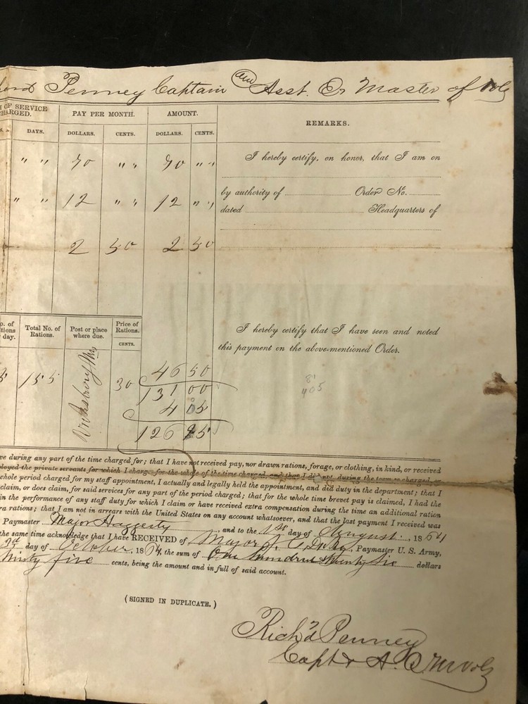 Vintage August 1864 Civil War Payment Voucher Post or place where due: Vicksburg, MS (during Military Occupation of Vicksburg) Paymaster: Major Haggerty Voucher for Richard Penney, Captain & Assistant Quartermaster of Volunteers