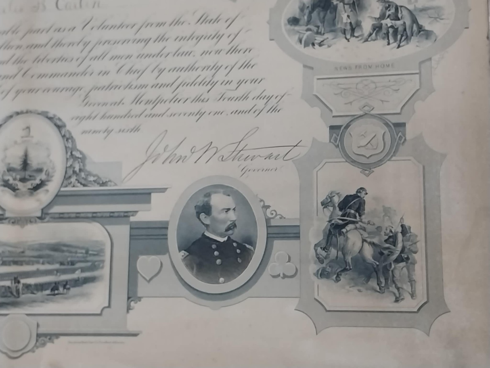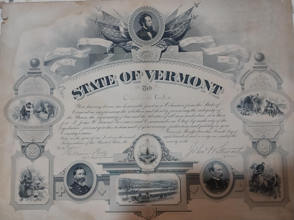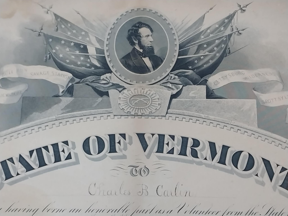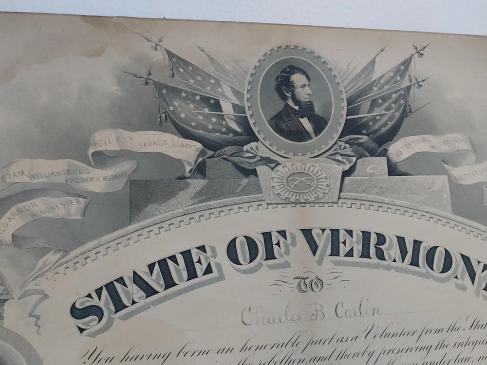 1871 Vermont Civil War Service Certificate for Charles B Carlin Volunteer Document