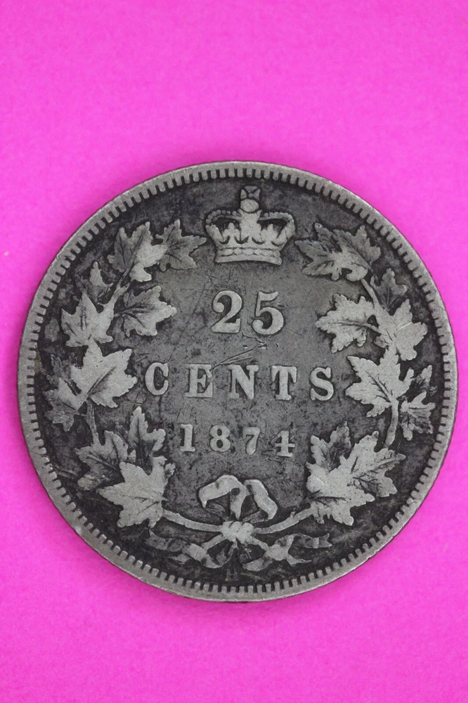 Strike Type: Business Coin: Silver Quarter Fineness: 0.925 Grade: Ungraded Precious Metal Content per Unit: .1728oz Total Precious Metal Content: .1728oz Year: 1874 Certification Number: na Certification: Uncertified Country/Region of Manufacture: Canada Brand/Mint: Royal Canadian Mint Composition: Silver