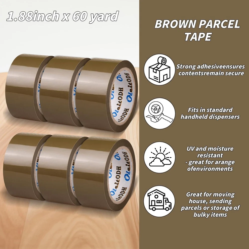 1.88" x 60 yd Brown Packing Tape in Bulk - Perfect for Multiple Applications