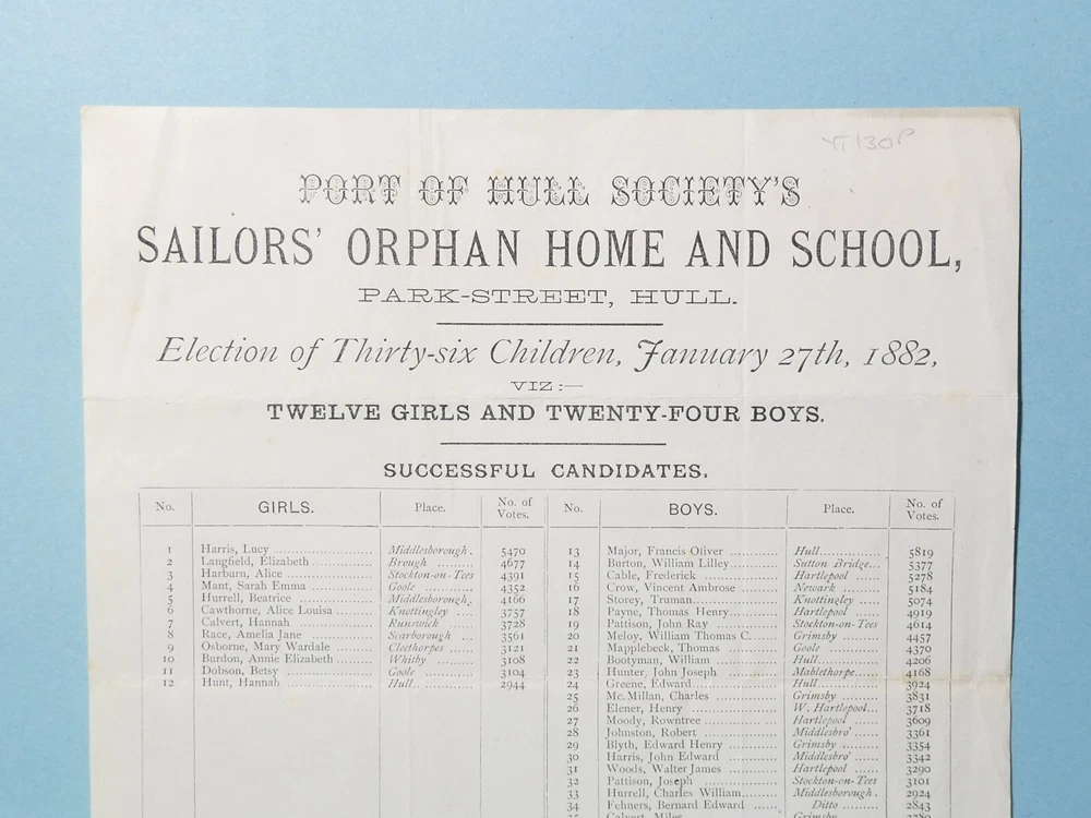 This is 1 of a number of paper ephemera items from Whitby, Hull, Beverley, Scarborough, and other neighbouring places within Yorkshire between 18th-20thC. These include Sailing Ship Bill of Sales - Napoleonic period posters - local Government Acts - Freehold Auction catalogues - Theatre advert posters - Sporting ephemera - Bill Heads and Letter Headings - Invitations to Grand Events - Pre-Stamp letters and covers - East Yorkshire Regiment - 1903 Exhibition booklets - Yorkshire Provincial Banking Cheques - Hull Asylum - Sailors - Port of Hull Society - York Castle Gaol - elections - Hull Infirmary - Zeppelins in Hull - Shipping - Documents - 1891 Licence to Kill Game - 1903 Visit of Her Royal Highness Princess Henry of Battenberg to Scarborough (who was of course Princess Beatrice, youngest child of Queen Victoria) - 1835 Will - Spa Whitby - 1837 Oath of a Burgess & Freeman of Beverley within the County of York - 1902 Minster Ward Candidates - Sheriff of Hull - 1905 Yorkshire Agricultural Society at Hull to name but a few. Some of the items I have never seen before and I am sure will be of great interest to the private social history archive collectors as well as museums alike. This is a very INTERESTING printed page of the results of the Port of Hull Society's Sailors' Orphan Home and Schools' Election from January 27th 1882. It has a list of the successful and unsuccessful candidates. The 12 girls and 24 boys are named and also tells you where they are from. As too are the unsuccessful named. I wonder how many of these survive. A very interesting item if you happen to be researching anyone on the list or not on the list as the case may be. !? Please see close-up photographs provided for more details and visual confirmation of condition for yourself. Condition report: Normal signs of age and use wear, mostly on the edges and corners. It has been folded and creased. The Boys' clothing list has been underlined in ink. There are some areas of discolouration. It measures approx. 10 inches x 8 and 1/8 inches. Click here to visit my eBay shop My stock ref: #ESK/71223/ in their own clear plastic folder marked #HBW Postage policies: I use the eBay Global Shipping Programme for most of my items as this allows me to send items internationally that I would normally only be able to offer to UK buyers. Items sent under this system are fully insured the shipping price also includes any customs duties. I do NOT have any control over the shipping or customs prices as eBay themselves set these prices. Combined postage for multiple items: AUCTION ITEMS "Usually when items are shipped through our Global Shipping Program it is not possible to combine separate orders as each transaction is given a unique reference code which is needed by our shipping centre to process orders. EBAY SHOP ITEMS However, it may be possible to get an automatic shipping di scou nt with the Global Shipping Programme by adding all your items to the eBay shopping basket and then purchasing. The eBay shopping cart automatically estimates any discounts for you, combining items where possible. However only these item must be in the cart at this time and will have to be added in and purchased within a certain timeframe. If you have any other items in your basket the system will be unable to combine the order." If this automated system does not apply the postage discount for you, please send me an eBay message and I will do my best to try and combine the shipping costs for you. To see ALL my other 7000+ items for sale, please click on VISIT SHOP or see other items . Strangely, both options seem to only give a limited view of what I have to offer, so to see everything I have available, click on Shop by Category which will give you a much better view. Scale is usually an English 1 penny coin which is 20mm in diameter which is just short of 7/8ths of an inch in diameter, or a universal sized Coke can (330ml). If you see A/F = a/f in the title or description it means "as found" condition which may have scuffs, scratches and damage. In relation to all my listings it does not mean " about fine ". I have used A/F for " as found " for 45 years. Track Page Views With Auctiva's Counter