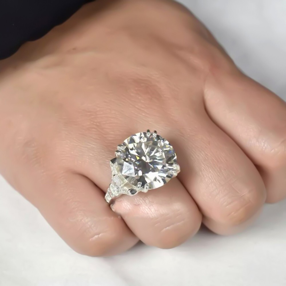RARE 10.50 Ct Off White Treated Diamond Solitaire Ring in 925 Silver Gift