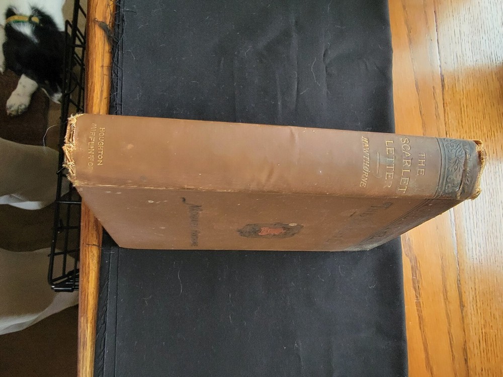 This 1886 printing of The Scarlet Letter by Nathaniel Hawthorne is a must-have for any literature collector. Published by Houghton Mifflin Harcourt, this book delves into the topic of letters in a beautifully written narrative. It is a great addition to any book collection and a must-have for fans of Hawthorne's work. There are minimal water marks on the outside. There are penciled names before getting to the title page. Separation of the title page from binding runs about halfway.