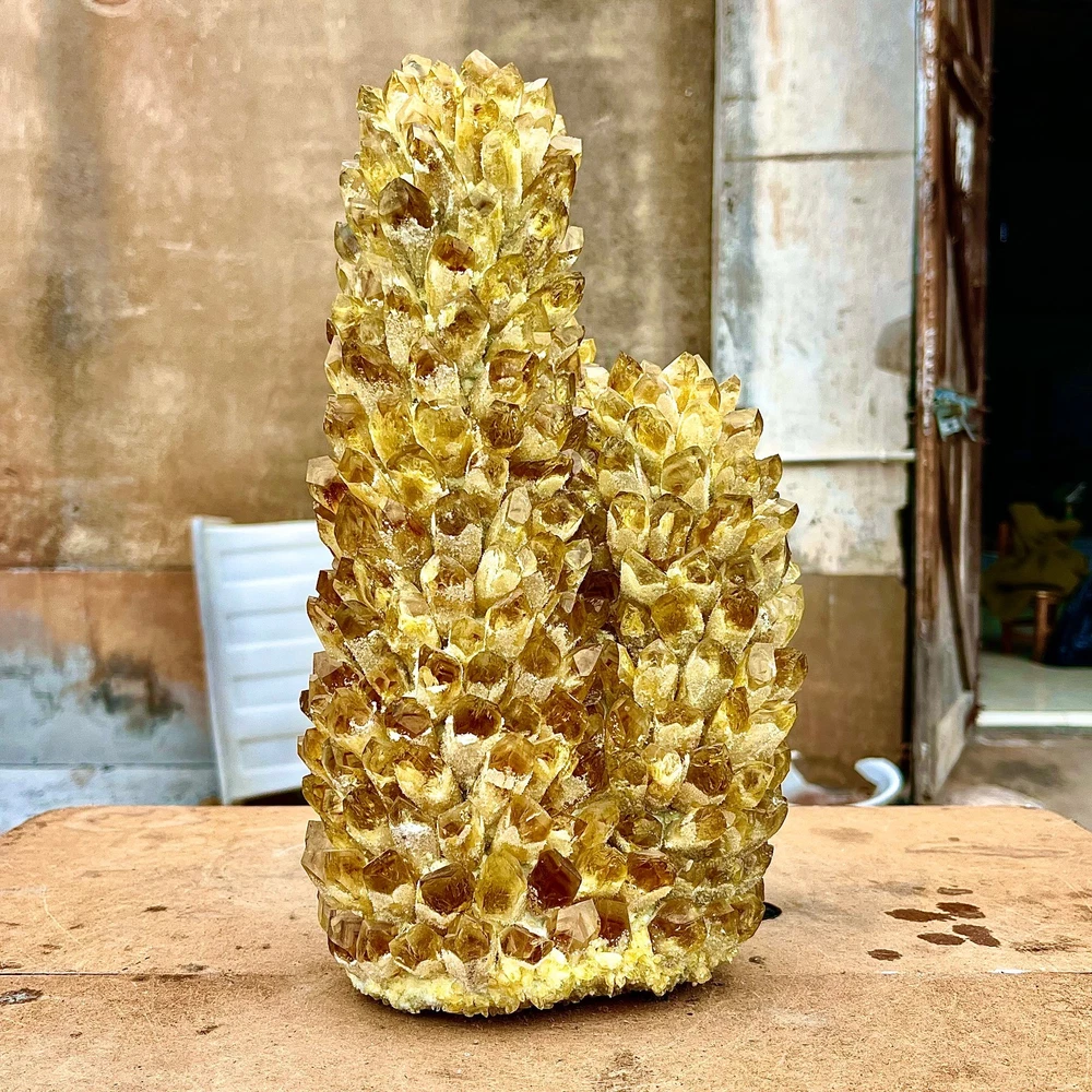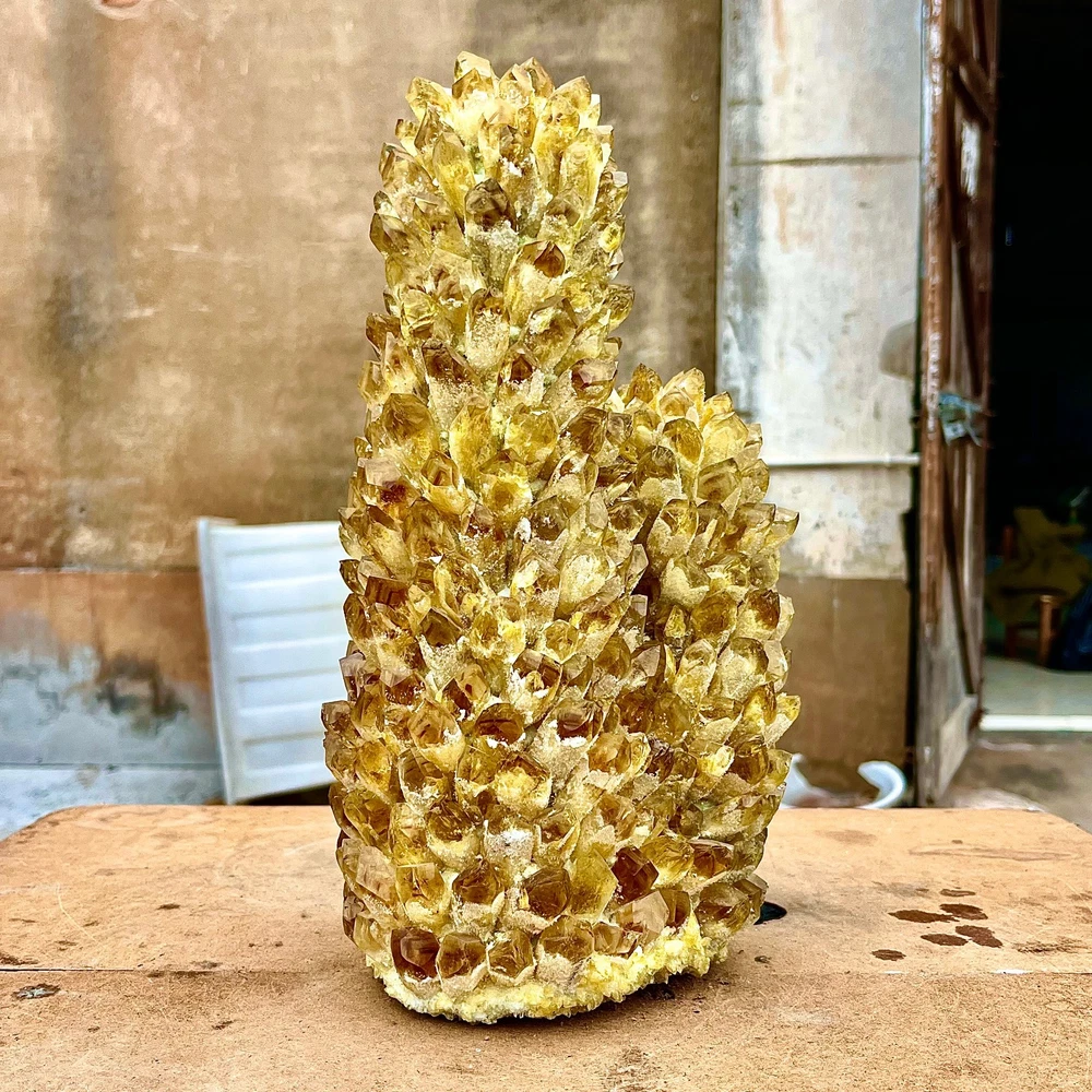 $ 5.02100g TOP Natural rainbow citrine Quartz hand carved obelisk crystal ornament