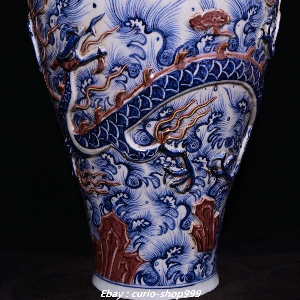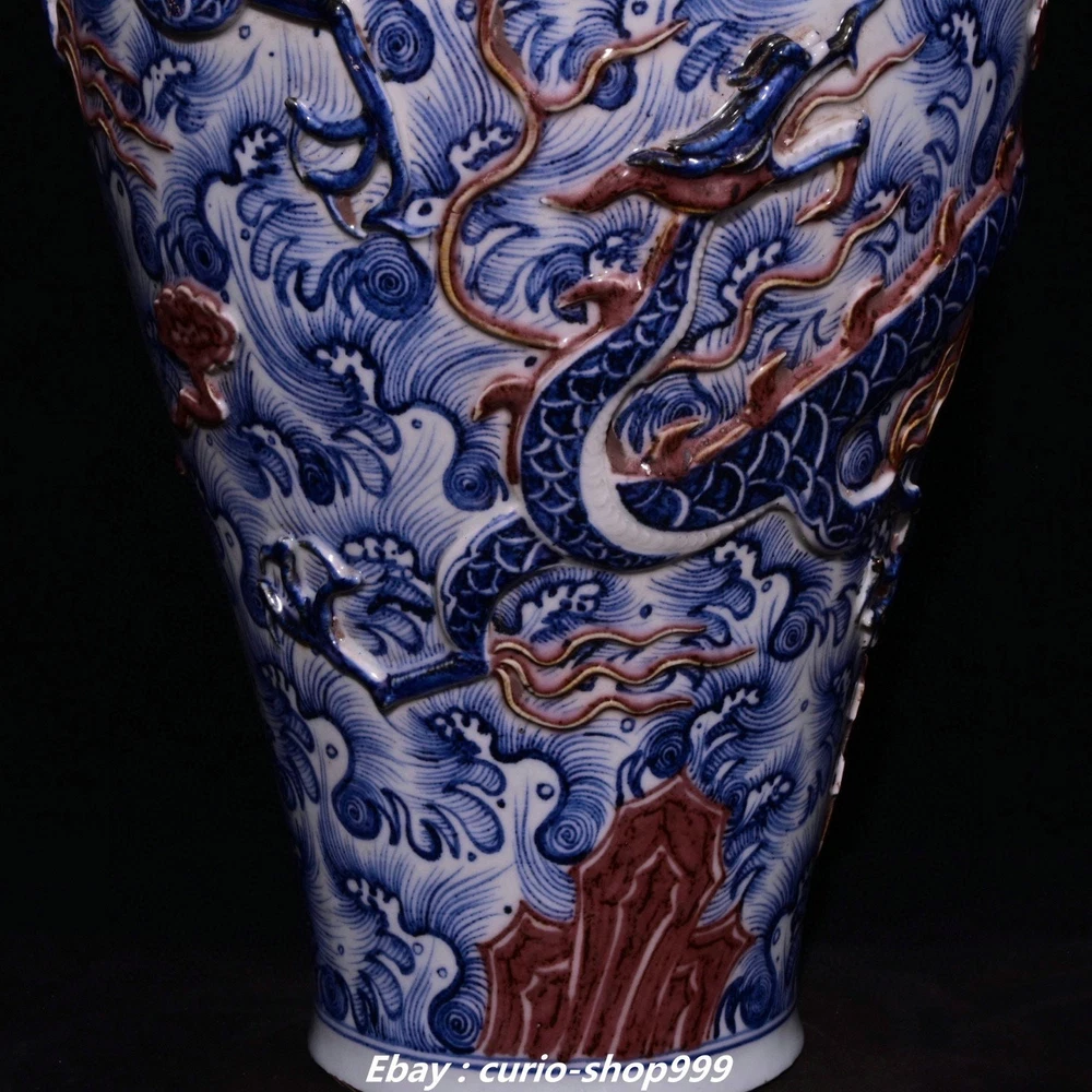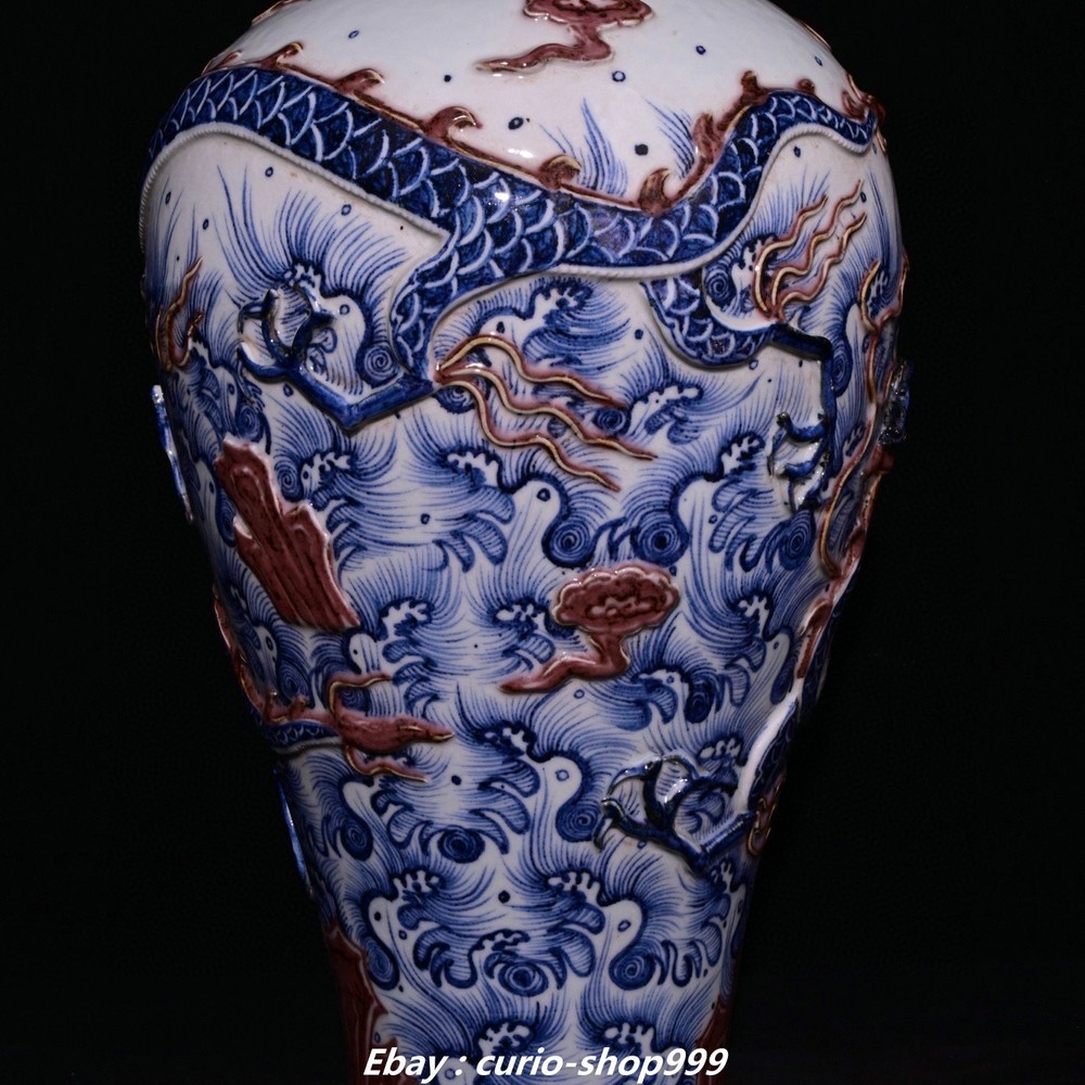 **** Welcome to our antique & Collectable Shop : Porcelain**** Description: Here is 18.9"Yuan Dynasty Blue White Red Glaze Porcelain Dragon Pattern Bottle Vase Pair . It is in good condition, and was created by skilled craftsmen in traditional style with fine handcrafts.This is a great piece of valuablellection, a valuable personal alter or a very good present. the handwork is very fine with incredible detailling. Don't miss out this chance to get it.Wish you good luck! Material : Blue White Red Glaze Porcelain Size: Heigh 18.9 Long 10.2 breadth 10.2 (inch) Condition Perfect Condition. Perfect, with no scratc hes, flaws or repairs. Weight: 15 KG----included the weight of packing materials Shipping cost to all over the world countries in Free Honored Customers: We are selling the collectibles products and crafts in Beijing ,China since 1993 and collected them all over the world all the time . In our shop the bronze sculpture, animal, vase, urn, flowerpot,Incense Burner.Table chair sets. Militaria goods. buddha statues, Bodhisattva Statues, Buddhist Ritual Items etc is our speciality .Many of the items we sell come from our own personal collection and have been in our family for a very long time .My great-grandfather was the first in this family to start collecting art & antiques when he still lived in San Xi and Tibet around 1922 ,some of the paintings he once collected can now be seen in museums around the globe.We won't make money from t he shipping cost, if you dislike the item when you receive it,we can refund all of your money to you within thirty days. Please confidence for bidding . We recommend the combine shipping and offer you an big price discount if you order more items together ! 2025.7.23 四 号