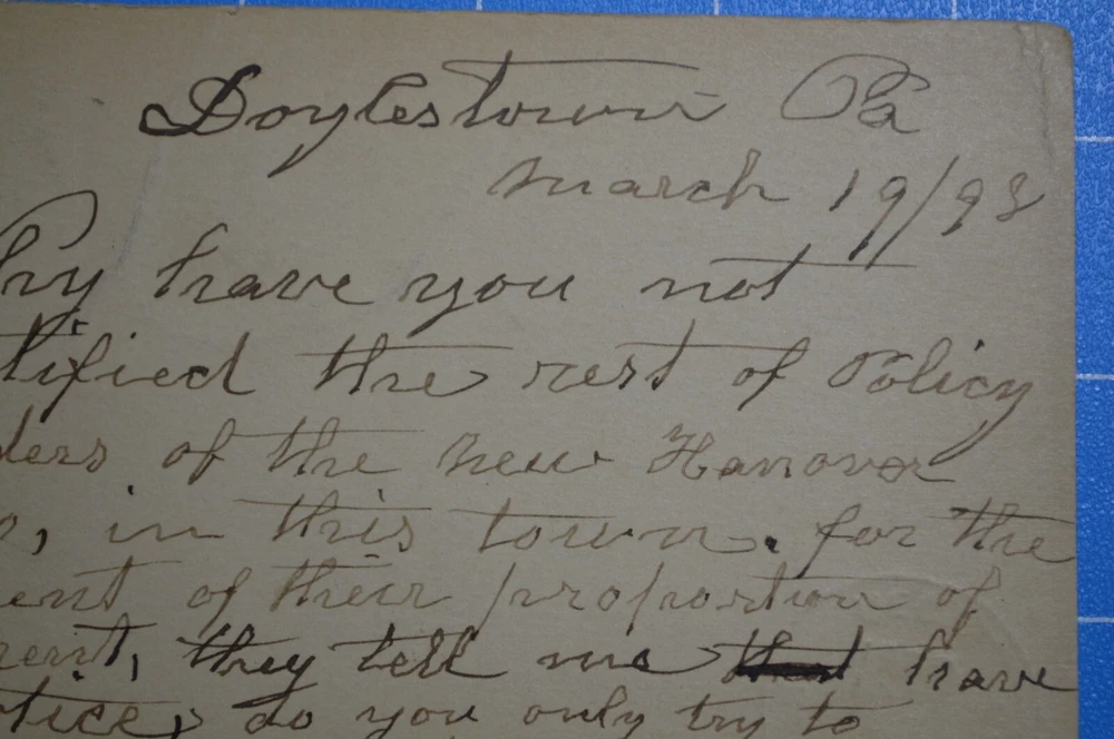 1898 Doylestown Bucks County PA Insurance Sheetz Correspondence Posted Postcard