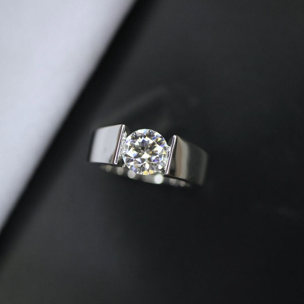 $ 115.361.2Ct Round Natural Moissanite Men's Wedding Ring in 14K Yellow Gold Over