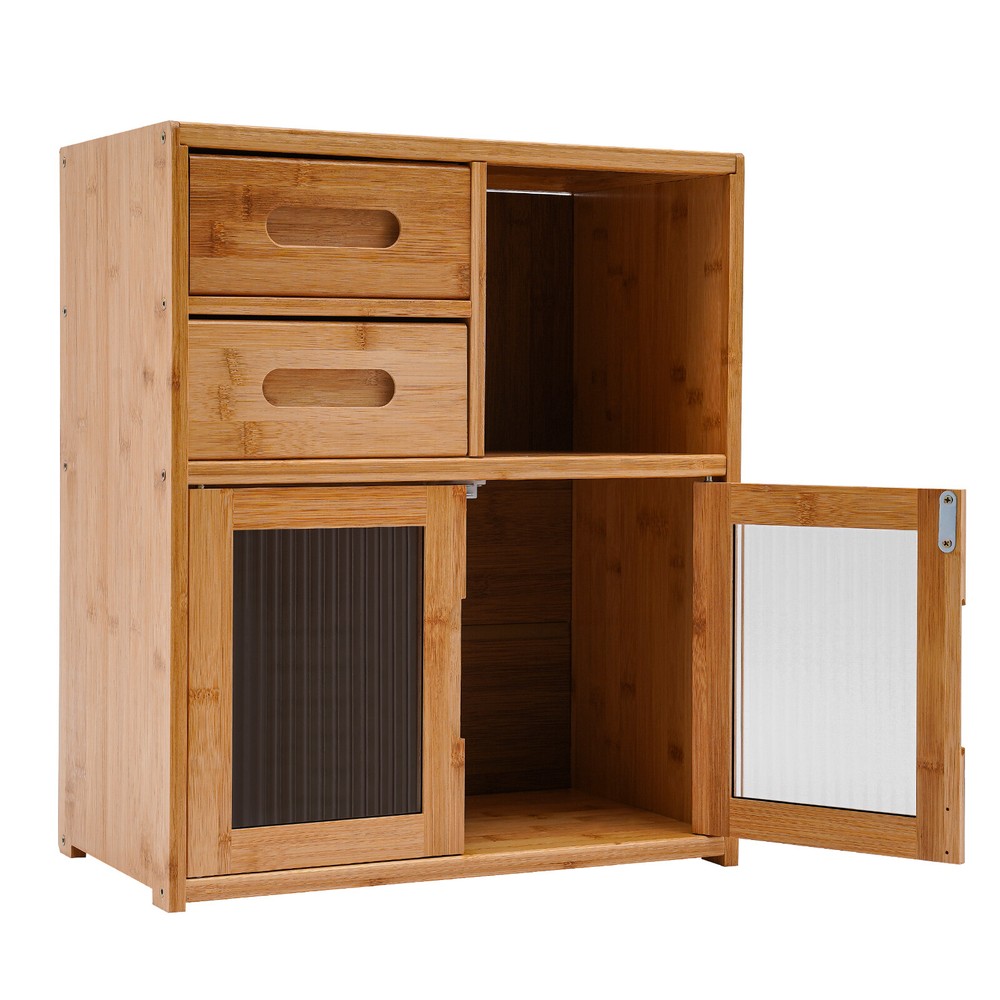Specification Color: Wood Shape: Rectangular Mounting Type: Floor Mount Assembly Required: Yes Material: Bamboo, Composite Board, Acrylic Finish: Painting Each Tier Load-bearing Capacity: About 7.5-10kg/16.5-22 lbs Drawer Load-bearing Capacity: About 2.5kg/5.5 lbs Thickness: About 12mm/0.47in Product Size: 42*23*48cm/16.5*9*18.9in Drawer Height: 9cm/3.5in Open Tier Size(L*H): 18*19cm/7*7.5in Bottom Tier Size(L*H): 39*25cm/16.5*9.8in Package Included 1* Storage Cabinet 1* Glove All Accessories for Assembly 18.9in Tall Kitchen Pantry Sideboard Bamboo Kitchen Storage Cabinet with Drawer Description Description Looking to add some organizational magic to your space? Look no further than the sleek and versatile kitchen storage cabinet! Two drawers, an open space, and a large storage space at the bottom make full use of vertical space for you to place items in the limited space. This innovative piece of furniture is designed to give you the edge when it comes to storing and organizing your belongings in an organized, tidy, and efficient manner. Key Features High-end Materials : The premium bamboo with painting, composite backboard, and acrylic make this product sturdy, solid, and environmentally friendly, ensuring a long service life without being easily scratched or damaged. High Stability : The thickened board(12mm), screw-reinforced stabilized structure, stable feet, and reinforced composite backboard help it to support about 16.5-22lbs load-bearing capacity of each tier, keeping it in place and ensuring the safety of your items. Ample Storage Space : The two drawers, one open space, and a large bottom space with doors give you the freedom to arrange the cabinet's interior according to the size and type of items you want to store, thus organizing your belongings and making the most of the cabinet's space. The top platform can also be used to place some small potted plants or a microwave oven, making it a practical and stylish storage area. Considerate Design : The extended embedded handle makes it easy for you to open drawers and cabinet doors. Visual doors provide convenience for you to quickly find the items you need and protect your food from direct sunlight. The magnet can achieve a tight fit and prevent dust from entering to keep food or utensils clean. AttractiveAppearance: The wood color paired with clear doors makes it both beautiful and stylish, which well blends with your kitchen, living room, bedroom, etc. while adding texture and beauty to your room. Easy to Assemble : Simple construction, pre-drilled holes, a glove, and complete accessories help you achieve a quick installation, you just need to make sure all parts are properly nested. Effortless Clean-Up : The smooth surface and simple structure allow for easy access to all its components and you can wipe it with a clean towel. Protective Packaging : The strong box, sponge, and foam provide comprehensive protection for the product to ensure that it is fully delivered to you to the greatest extent possible. Customer Service : We are honored that you have chosen our product. We have sufficient confidence in the quality of the product so that you can buy it confidently. But if you have any questions, you can contact our customer service, he will patiently answer and solve your problems. Details Smooth Edges : The edges are finely treated to provide a comfortable and safer touch. Double Doors : They can provide enough door-opening space for you to place and take out items more conveniently. Rods : The inside of the drawer is supported by extra bamboo rods, which can effectively prevent the drawer from falling accidentally. Application It suits many occasions, like home kitchen, dining room, hallway, living room, office, break room, restaurant, and so on to place kitchen items such as tableware, glass jars, microwave donkeys, spices, seasonings, and daily necessities such as books, photo albums, pens, documents, etc. Specification Color: Wood Shape: Rectangular Mounting Type: Floor Mount Assembly Required: Yes Material: Bamboo, Composite Board, Acrylic Finish: Painting Each Tier Load-bearing Capacity: About 7.5-10kg/16.5-22 lbs Drawer Load-bearing Capacity: About 2.5kg/5.5 lbs Thickness: About 12mm/0.47in Product Size: 42*23*48cm/16.5*9*18.9in Drawer Height: 9cm/3.5in Open Tier Size(L*H): 18*19cm/7*7.5in Bottom Tier Size(L*H): 39*25cm/16.5*9.8in Package Included 1* Storage Cabinet 1* Glove All Accessories for Assembly Notes Please note that food, flower pots, and other items are not included. Please allow the slight color difference caused by the shooting light and 1-3cm error due to manual measurement and make sure you do not mind before ordering. Payment Delivery details Terms of sales About us Contact us Payment We accept ebay payment 。 Fees such as import duties, taxes are not included in the item price or shipping costs. These charges are the buyer's responsibility. Delivery details Shipping: 2-9 working days to: USA Terms of sales We maintain high standards of excellence and strive for hundred percent customer satisfaction. Feedback is very important to us. We hope that you contact us immediately before you give neutral or negative feedback, so that we can address your concerns. It is impossible to address issues if we do not know about them! About us Your satis faction is our ultimate goal. We work hard to earn your trust and future business. Our certified technicians have tested each item before shipping. The unit comes with 1 year limited warranty on all manufacturing defects. a) If you receive a defective item, you may return it or ask for a discount. Please contact us within 14 days after you receive the package. b) What you returned must be intact and in its original packaging as re? u. Customer is responsible for shipping costs of the returned item. c) We will cover the cost of shipping back t with the shipping rate indicated in the registration page. We will send you a new unit or refund the full payment you paid. T