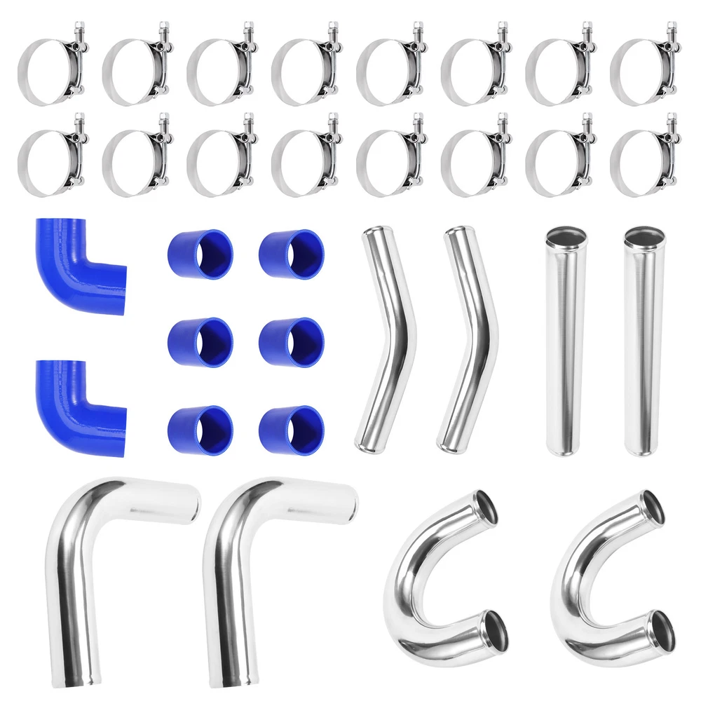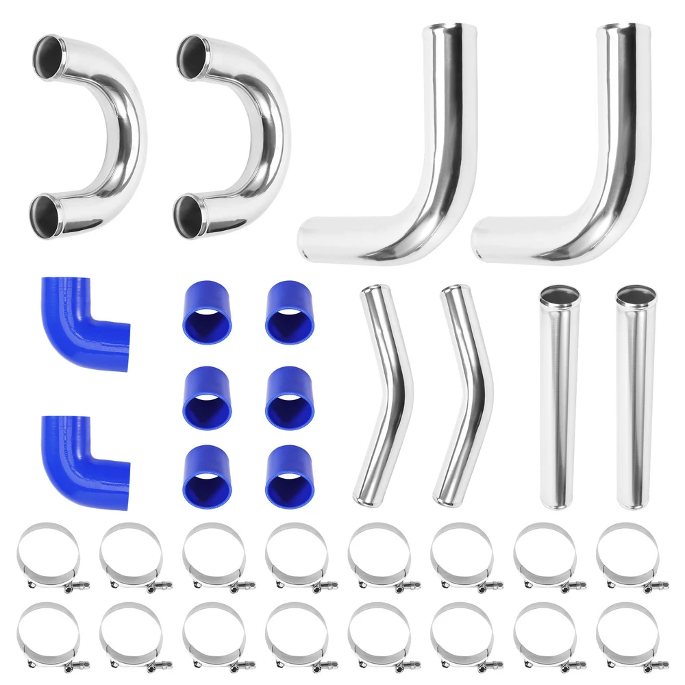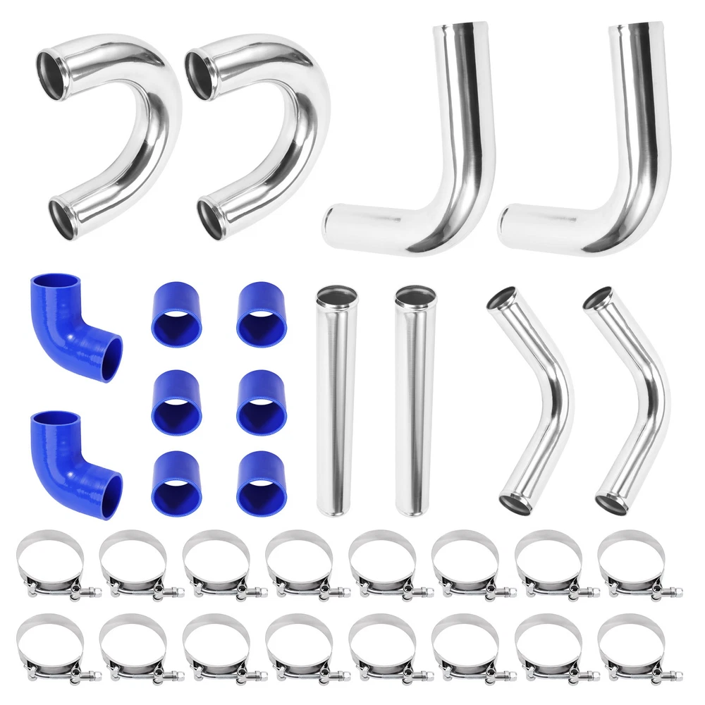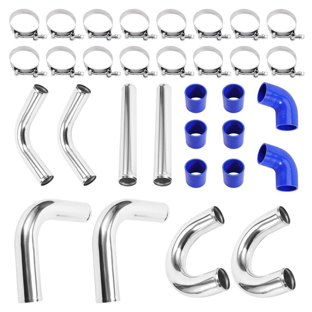 Description: Pipe Thickness: 1.8mm--Durable quality size Pipe length: 18'' Application:Universal fits all Turbo Projects Made out of high quality of 6061 aluminum Manual polishing finished,and the bolt clip is easy to install Specification: Condition: New Type: Turbo Intercooler Pipe Fitment Type: Direct Replacement Material: 6061 Aluminum Manufacturer Warranty:2 Year Features: Anti-rust and Anti-preesure Easy to install and uninstall Have a longer service life Package Including: 2x 90 Degree Aluminum Pipe 2.5" 2x Straight Aluminum Pipe 2.5" 2x 135 Degree Aluminum Pipe×2 2.5" 2x U Aluminum Pipe×2 2.5" 6x Straight Silicone Hose 2.5" (Blue ) 2x 90 Degree Silicone Hose×2 2.5"(Blue ) 16x Clamps 2.5" (You will get exactly as shown in the picture above) Notice: * Professional installation is highly recommended (No Instruction Included) * For any needs please contact us. MXR04FXJT